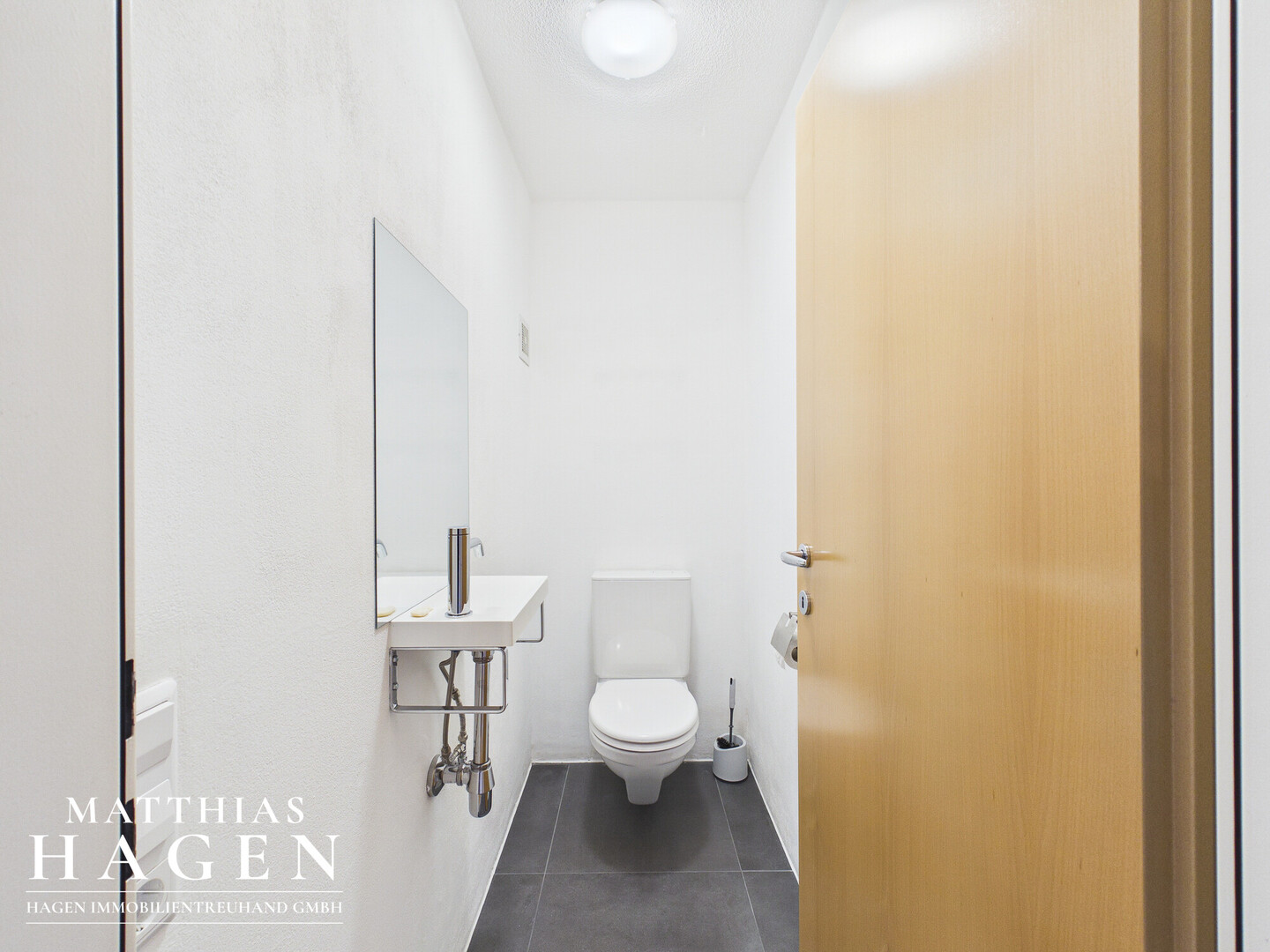 Das Badezimmer wurde bereits stilvoll modernisiert. Zur Wohnung gehört weiters ein Privatgarten und im Innenhof der Wohnanlage gibt es eine große gemeinschaftliche Spielfläche.