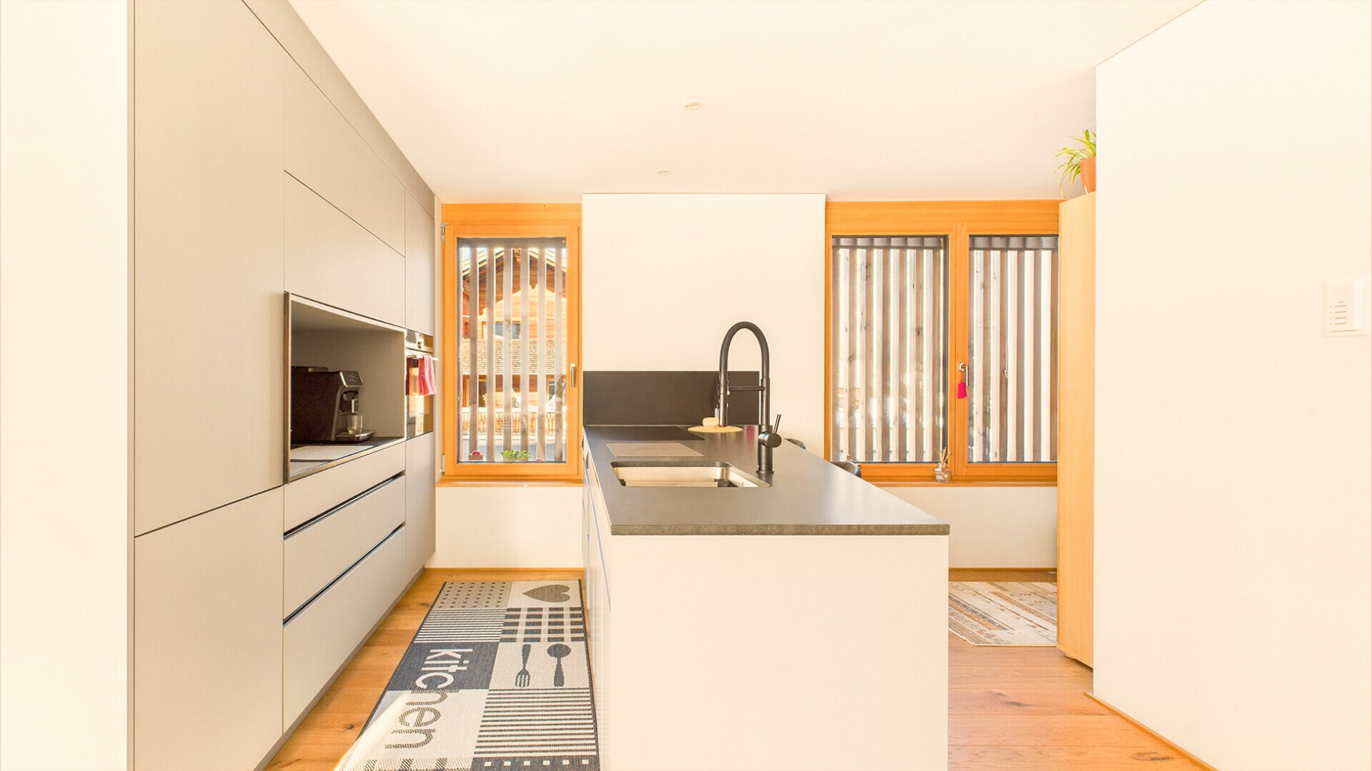 Die ca. 56 m² große Wohnung befindet sich in dem gepflegten Wohnhaus KOMOT und bietet eine gut durchdachte Raumaufteilung. Der offen gestaltete Wohn-Essbereich mit moderner Küche bildet den Mittelpunkt der Wohnung und bietet ausreichend Platz für den Alltag sowie für gemeinsame Stunden mit Familie und Freunden.