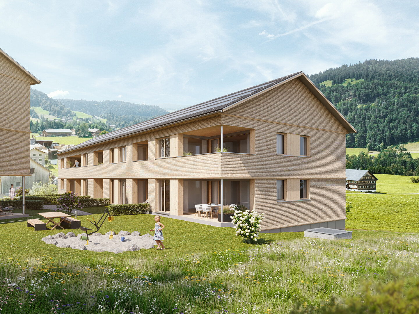 Wie sieht das Wohnen der Zukunft aus? Unser neues Passivhausprojekt in Hittisau – Nordhalden gibt eine klare Antwort: nachhaltig, regional verwurzelt und qualitätsvoll gebaut. Inmitten der wunderschönen Hittisauer Natur entstehen, verteilt auf zwei Baukörper moderne Wohnungen, die das Leben in den Vordergrund stellen. Der verkehrsfreie Bereich zwischen den Häusern schafft einen geschützten Raum für Begegnung, Gemeinschaft – und für die Jüngsten auch Platz zum Spielen: Ein eigener Spielplatz sorgt für zusätzlichen Lebenswert.