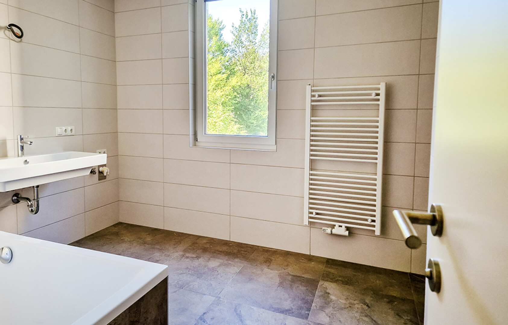 Die Wohnung bietet auf ca. 91 m² Wohnfläche ein durchdachtes 4-Zimmer-Konzept mit einem offenen Wohn-, Ess- und Kochbereich, der besonders durch seine Helligkeit und Großzügigkeit überzeugt. Der Zugang zur ca. 17 m² großen Süd-West-Terrasse erfolgt direkt über den Wohnraum – ideal, um den Außenbereich in den Alltag zu integrieren. Dank großflächiger, 3-fach verglaster Panoramafenster wirkt die Wohnung besonders lichtdurchflutet und offen, während gleichzeitig ein effektiver Schall- und Wärmeschutz gewährleistet ist. Das Badezimmer verfügt über ein Fenster, eine Badewanne, eine Dusche sowie einen Anschluss für die Waschmaschine. Ein separates WC sorgt für zusätzlichen Komfort, ein praktischer Abstellraum rundet das Raumangebot ab. Zur Wohnung gehören außerdem ein Kellerabteil sowie ein Tiefgaragenplatz, was zusätzlichen Stauraum und komfortables Parken ermöglicht.