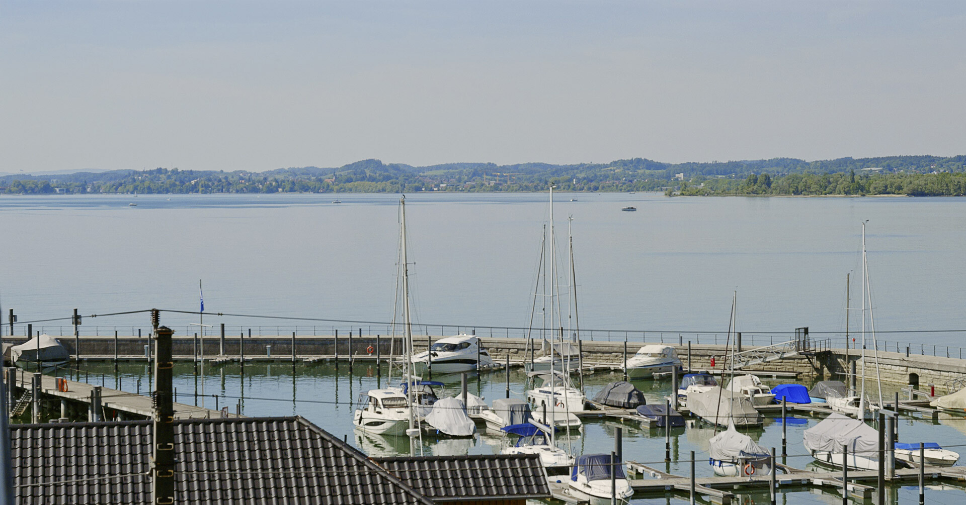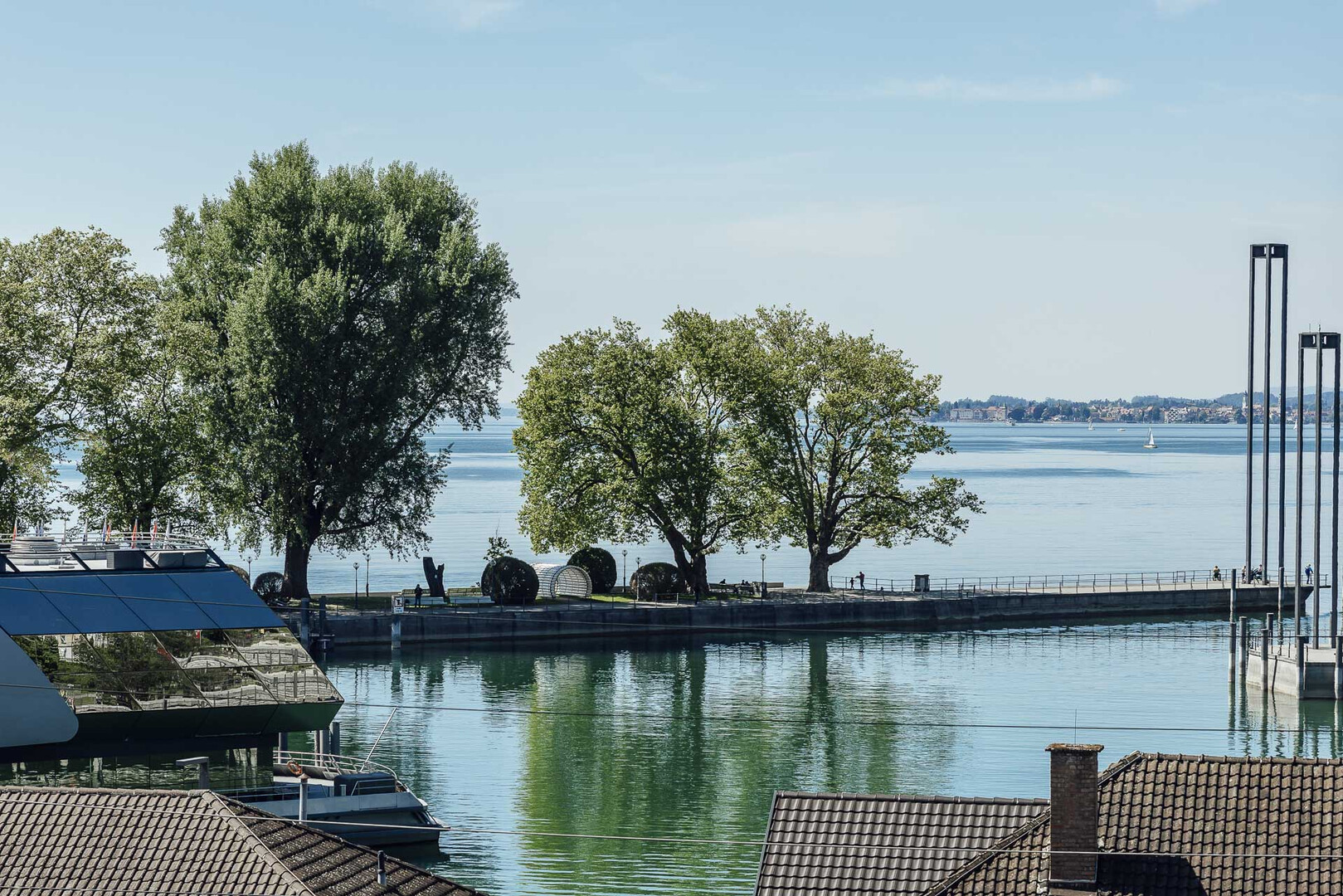 Zwischen dem glitzernden Bodensee und dem grünen Rücken des Pfänders gelegen, eröffnet diese Adresse einen Blick auf zwei stille Schönheiten. Zu Füßen der lebendige, charmante Hafen von Bregenz – stets präsent, doch niemals aufdringlich. Während draußen die Schiffe vorbeiziehen und der Himmel im See versinkt, entfaltet sich innen ein Gefühl von Weite und Geborgenheit.