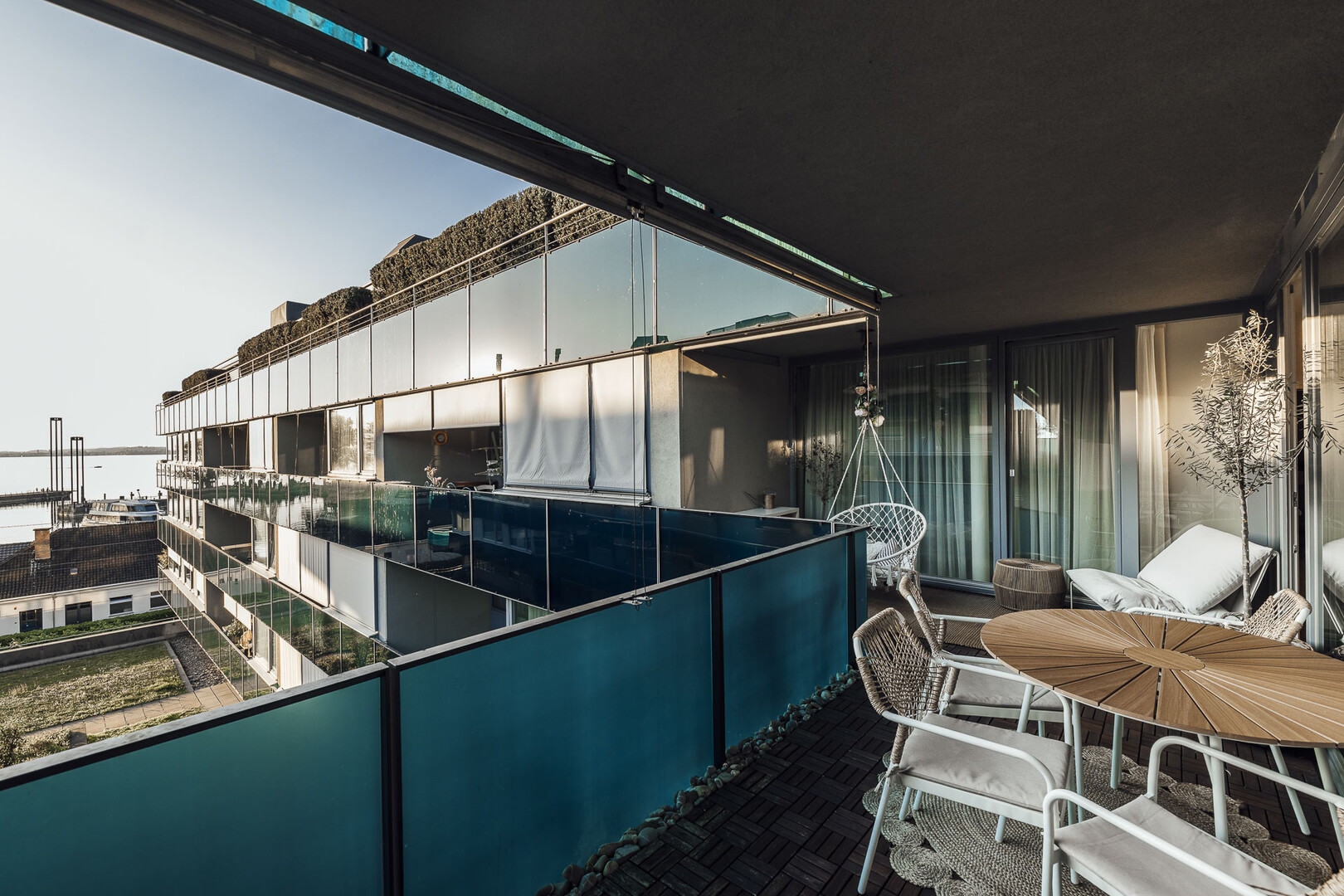 Ein lichtdurchfluteter Wohn- und Essbereich mit offener Küche bildet das Herzstück der Wohnung – ein Ort zum Ankommen, Genießen, Leben. Das Schlafzimmer öffnet sich ebenfalls Richtung See – mit Morgensonne und leiser Brise. Nach dem Aufwachen sind sie nur einen Schritt von der Terrasse entfernt.