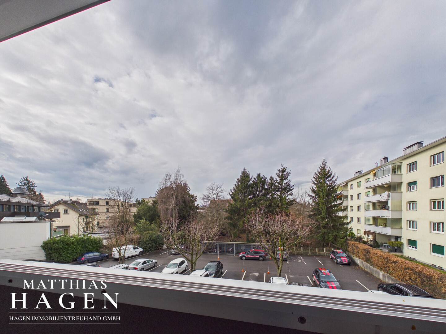 Zum Haus gehört ein großer Allgemeinparkplatz mit Schranke. Diese Wohnung hat KEINEN Stellplatz in der Tiefgarage.