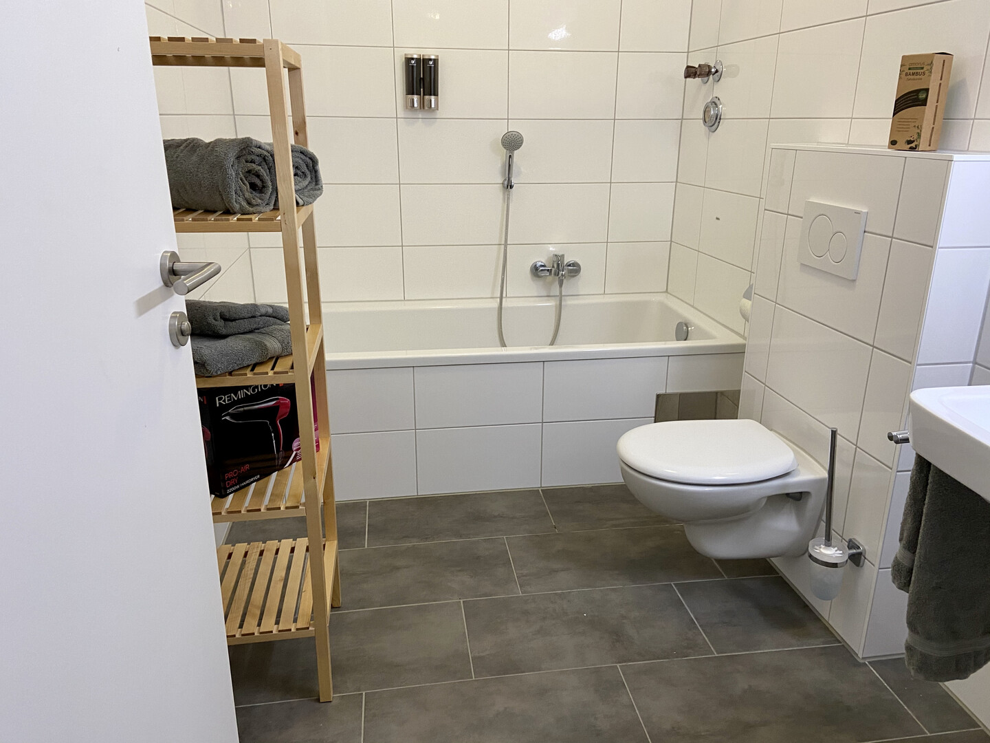 Das großzügige Schlafzimmer ist mit einem modernen Doppelbett, Nachtkästchen und einem Kleiderschrank ausgestattet. Das Badezimmer verfügt über eine Badewanne und einem Handtuchheizkörper.
