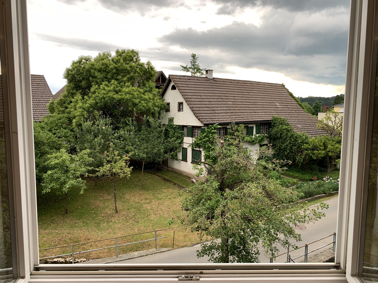 Die Wohnung gehört zu einer Überbauung und somit hat es die Vorteile wie einen grossen Fahrradkeller, Wasch- und Trockenraum, Tiefgarage, Spielplatz und Recycling-Systeme. Zur Wohnung gehört ein Tiefgaragenplatz und ein grosses Kellerabteil von 12m2. Unsere Wohnung im ersten Haus liegt Richtung Dorfmitte, ist im 1. OG und wir teilen den Eingang mit nur zwei anderen Familien, was sehr angenehm ist.