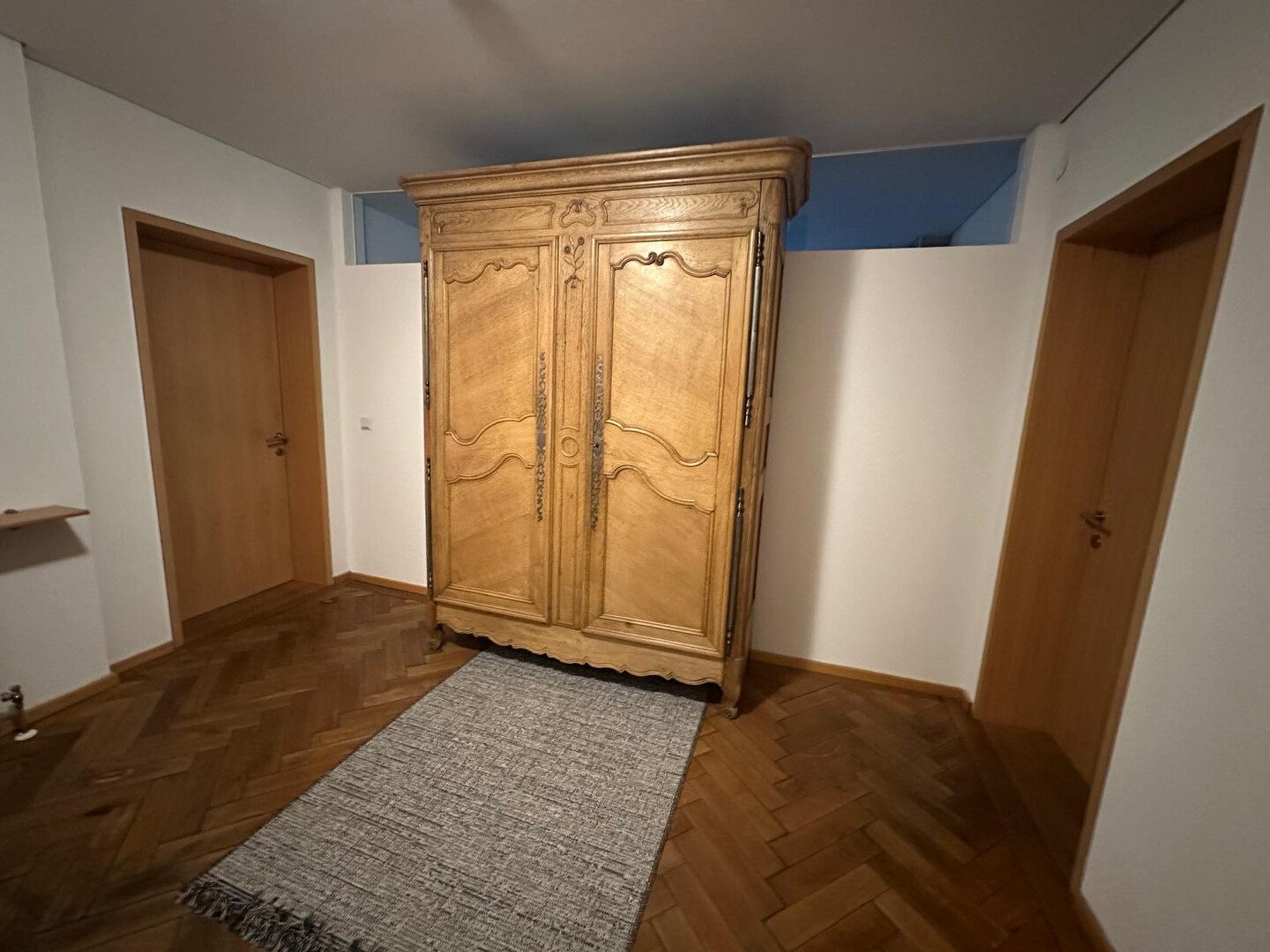 Geräumiger Vorraum mit großem Schrank, offene Küche mit Zugang zum ersten Schlafzimmer/Wohnzimmer, (es wurde eine Wand eingezogen, daher nun sogar zwei Schlafzimmer - insgesamt: