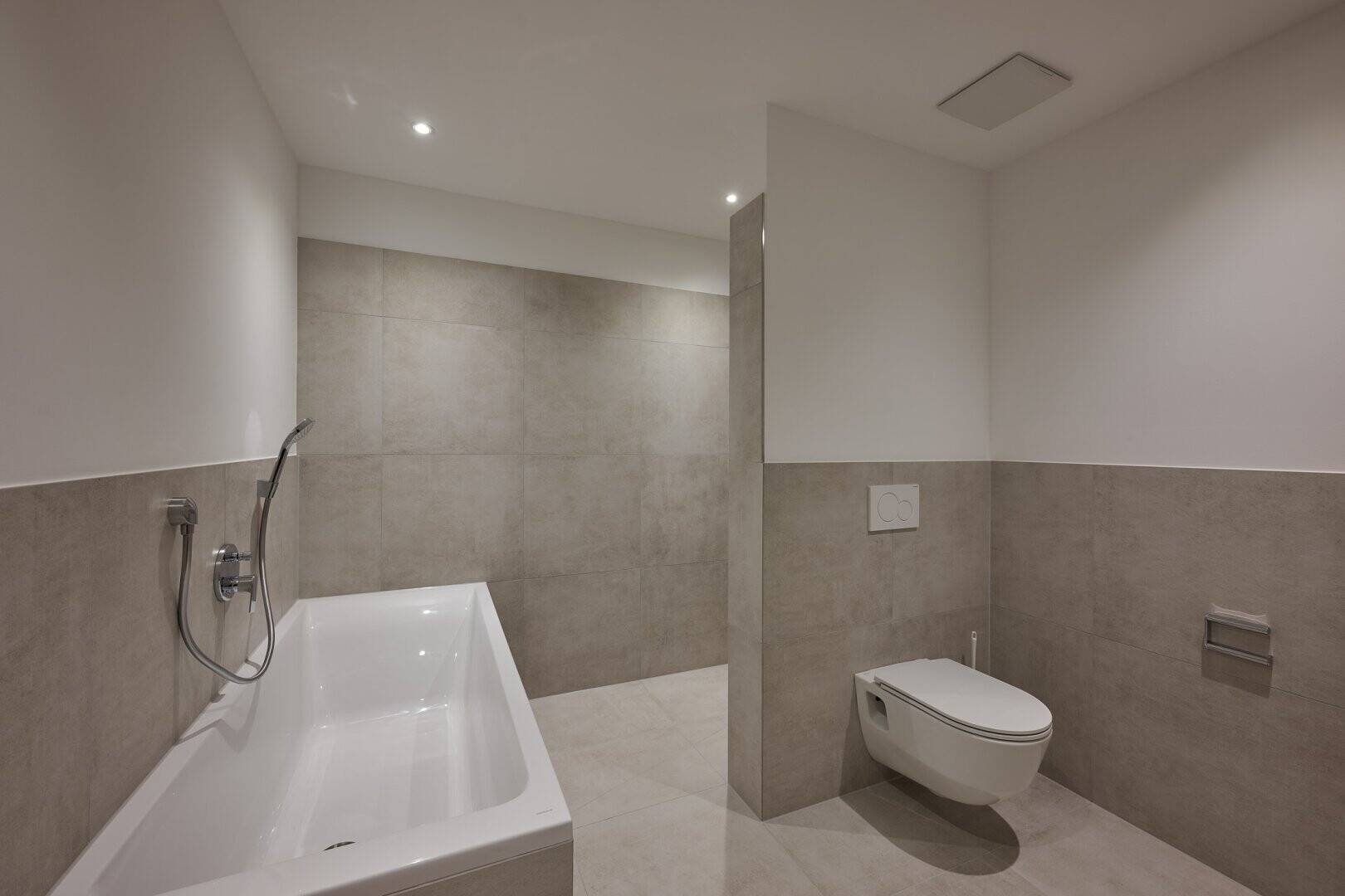 Großzügige Fensterflächen und lichtdurchflutete Räume schaffen eine offene, freundliche Wohnatmosphäre. Der einladende Wohn- und Essbereich bildet das Herzstück der Wohnung und öffnet sich zur sonnigen Westterrasse. Hier genießen Sie entspannte Stunden mit Blick auf die umliegende Natur – perfekt für laue Sommerabende, gemütliche Grillrunden oder einfach zum Abschalten.