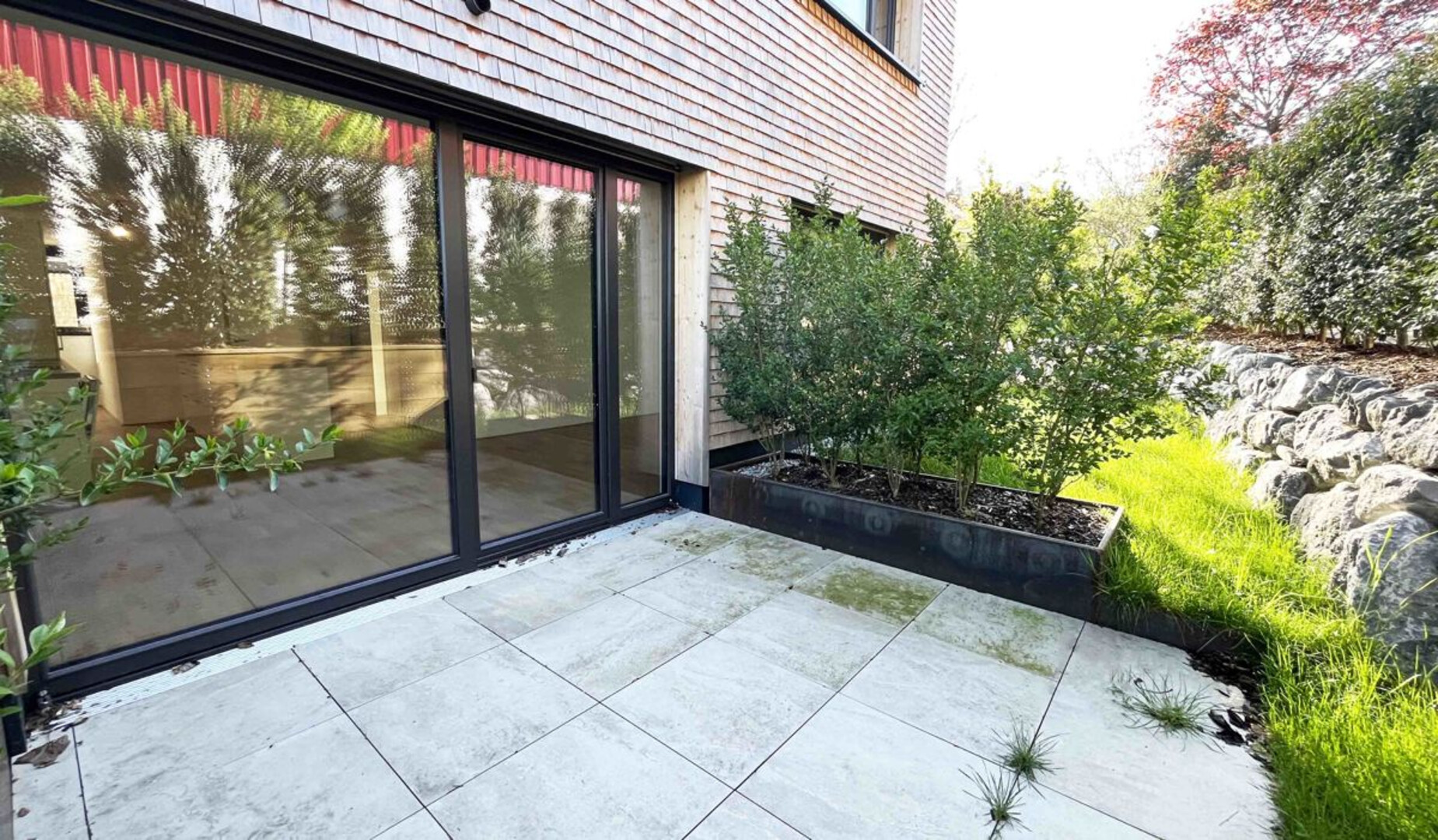Den Bewohnern stehen außerdem ein Kinderspielplatz, eine gemütliche Sitzecke im Freien, ein Trockenraum sowie ein Fahrradraum zur gemeinschaftlichen Nutzung zur Verfügung. Zur Wohnung gehören zudem ein Garagenstellplatz und ein eigener Kellerraum. Für Besucher sind zwei überdachte Stellplätze sowie ein zusätzlicher Außenstellplatz vorhanden.