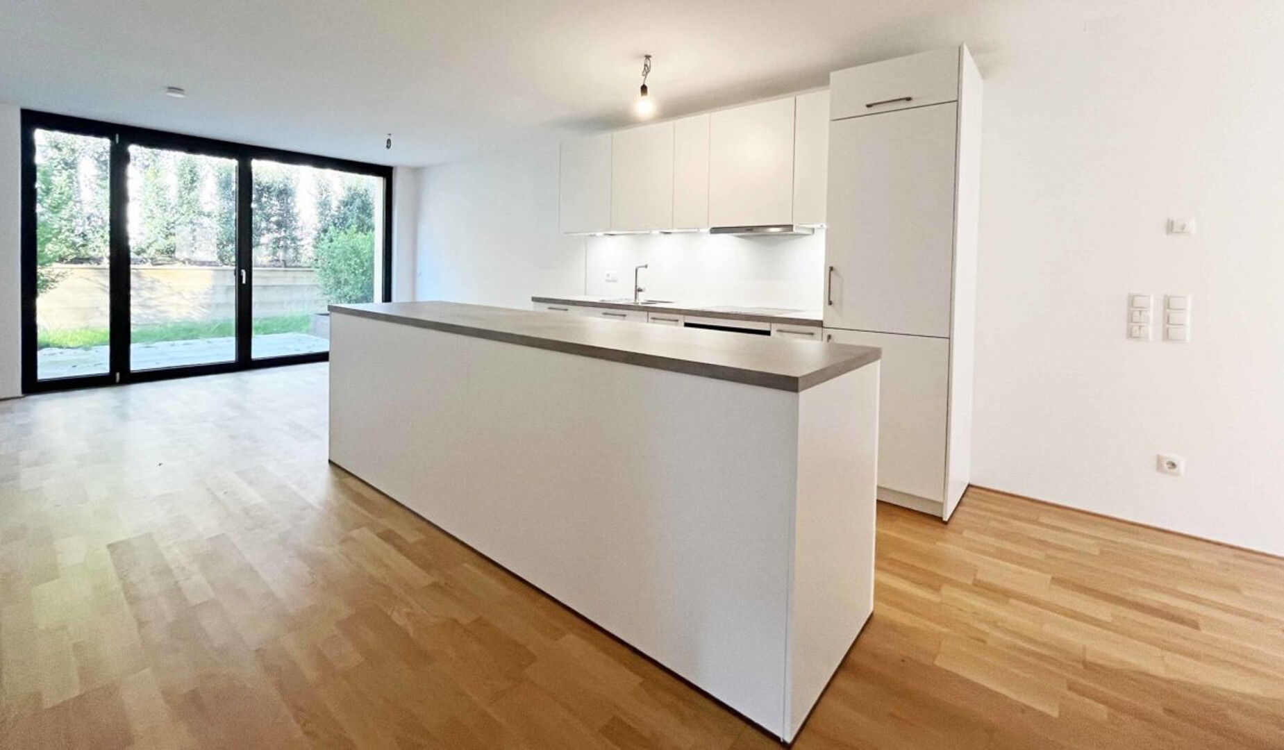 Der großzügige Koch-, Wohn- und Essbereich ist mit einer hochwertigen Einbauküche ausgestattet. Eine nach Südwesten ausgerichtete Terrasse lädt dazu ein, sonnige Stunden im Freien zu genießen. In den Wohn- und Schlafräumen wurde edles Eichenparkett verlegt, das den Räumen eine warme und elegante Ausstrahlung verleiht. Das Badezimmer bietet eine Badewanne, eine Dusche, ein WC sowie einen Anschluss für eine Waschmaschine.