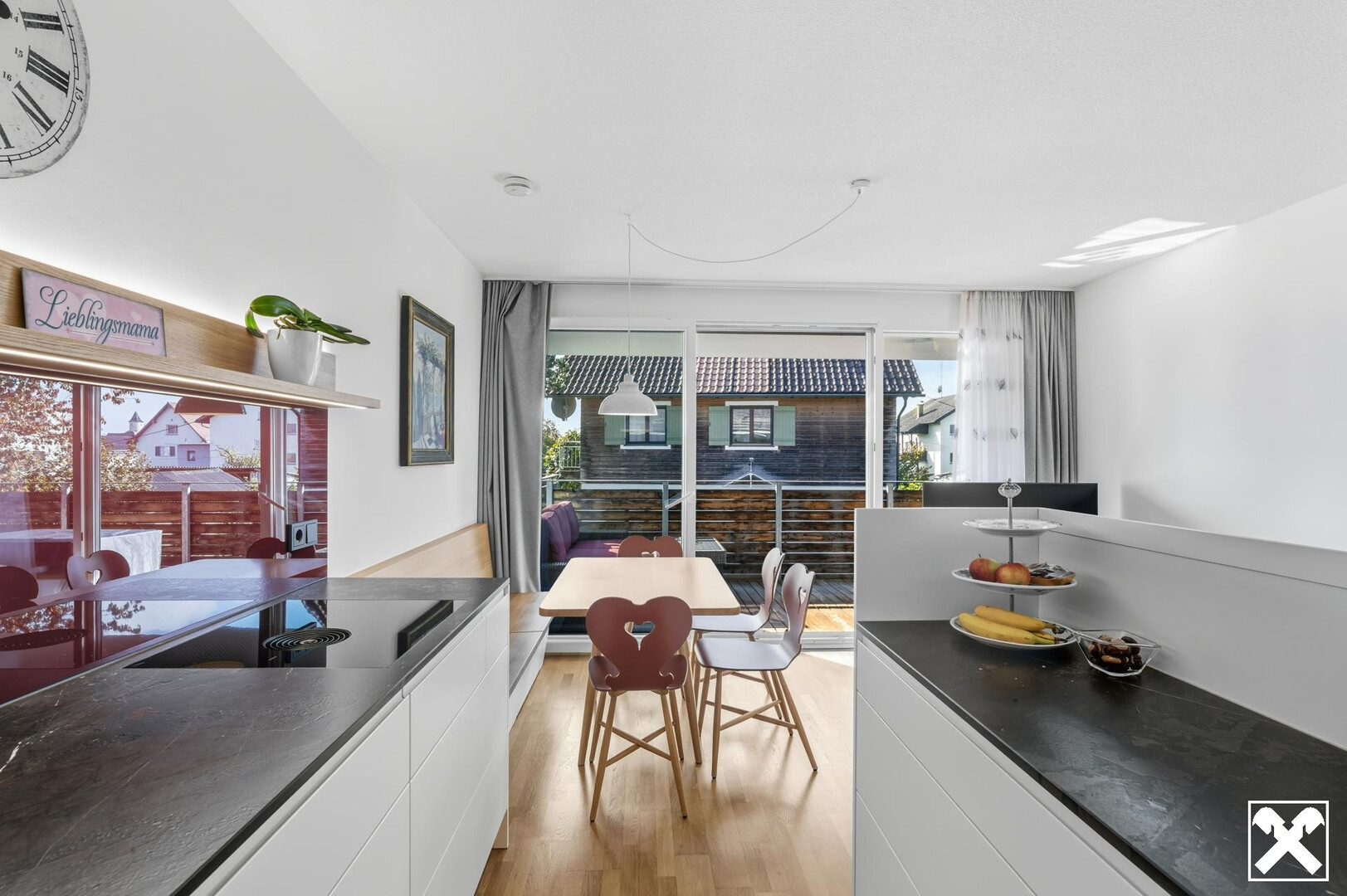 - Am erweiterbaren Esstisch mit Sitzbank und preisgekrönten Designer Stühlen, finden bis zu 10 Personen Platz