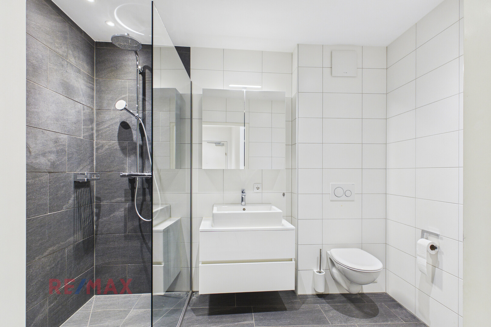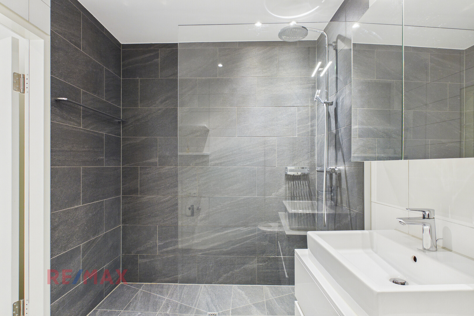 Das Badezimmer überzeugt mit einer komfortablen Regendusche und moderner Linienführung. Ein eigenes Kellerabteil sowie ein Tiefgaragenplatz sind bereits inkludiert und unterstreichen den Wohnkomfort. Der Personenlift sorgt für bequemen Zugang.