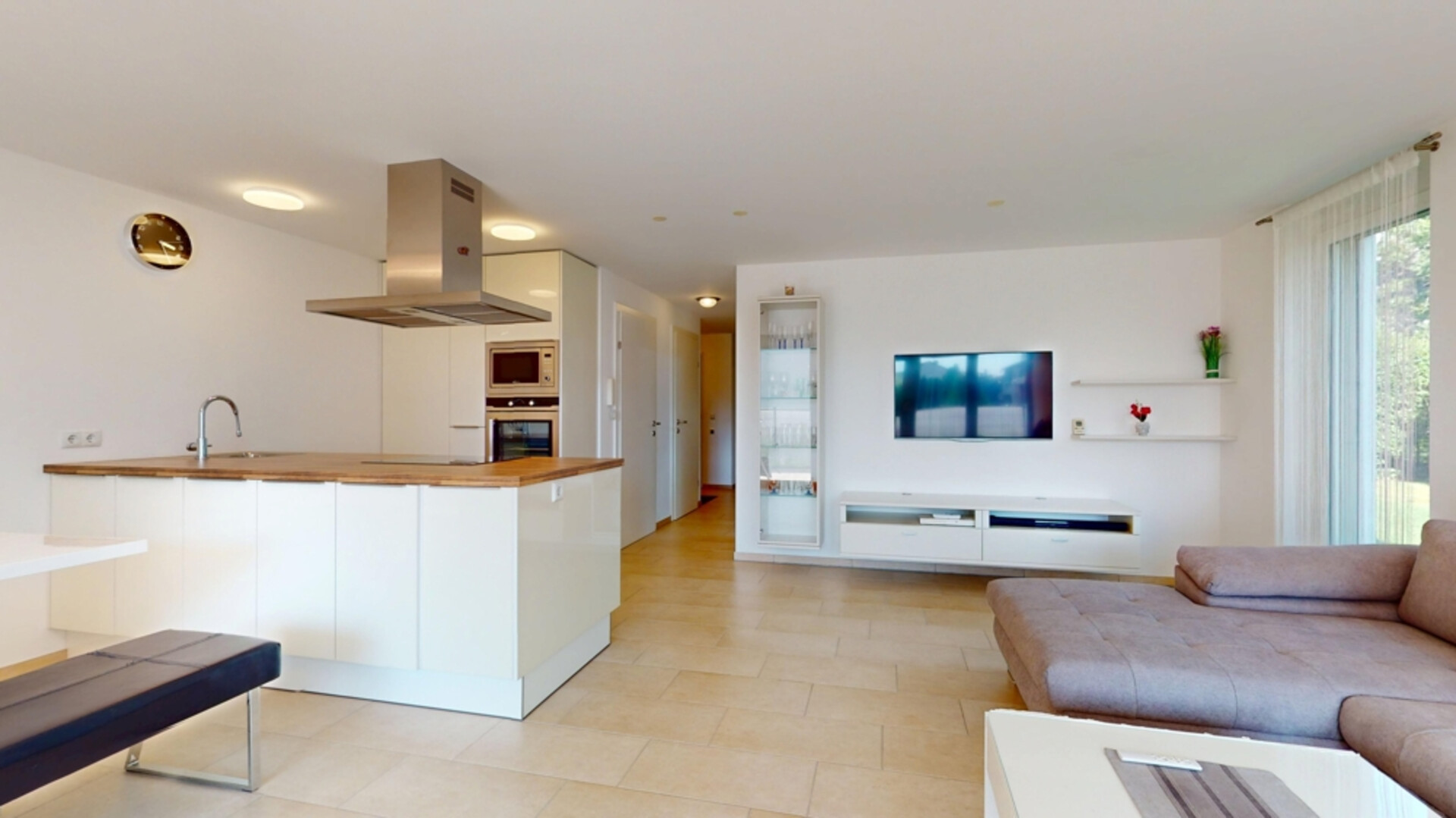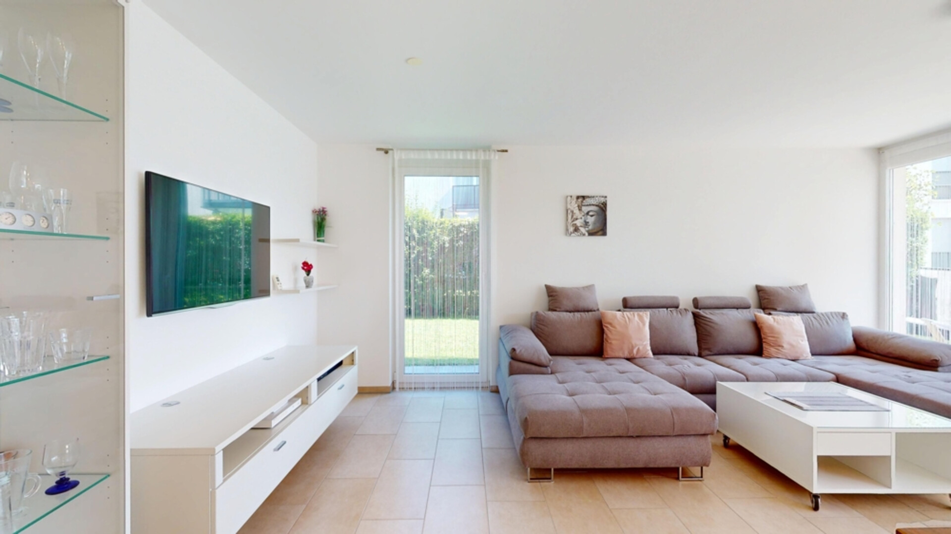 Möblierte Gartenwohnung mit Terrasse und Garten Die Wohnung überzeugt durch eine klare Aufteilung und ein angenehmes Wohngefühl. Vom Flur aus erreicht man zwei Schlafzimmer, einen Hauswirtschaftsraum, ein Badezimmer mit Dusche und Badewanne sowie ein separates Gäste-WC. Der Wohn-Essbereich mit moderner Einbauküche bildet den Mittelpunkt der Wohnung. Das Mobiliar kann auf Wunsch übernommen werden. Terrasse und Garten schaffen einen privaten Freiraum zum Entspannen. Hinweis für Bewerber: max. 3 Personen aufrechtes Arbeitsverhältnis einwandfreier Leumund