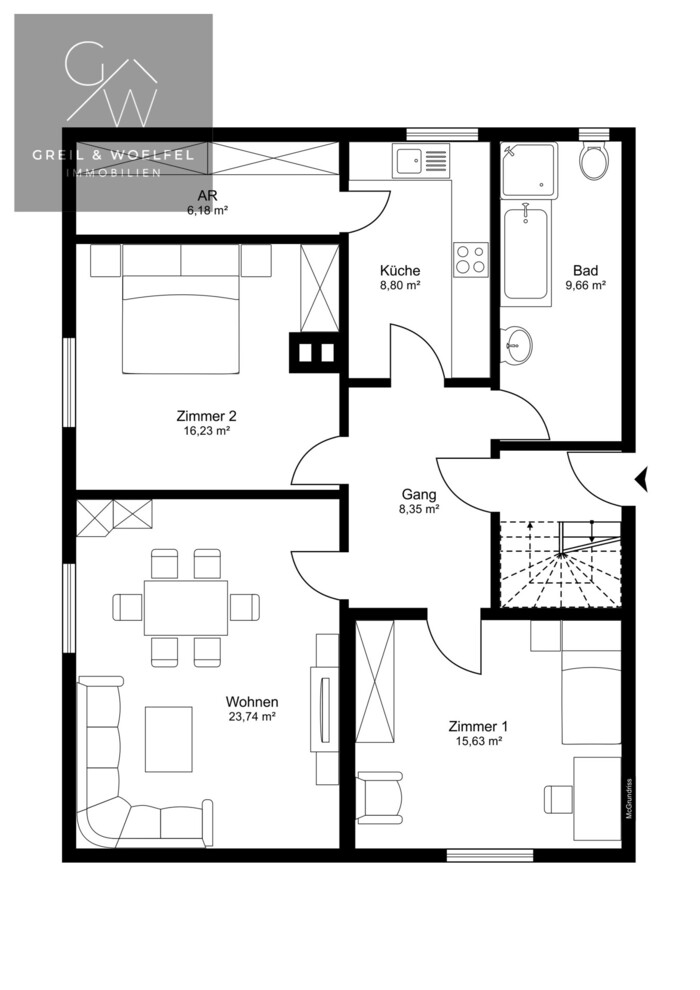 - Maisonette Stil mit ca. 131 m² Nutzfläche (inkl. Dachschrägen)