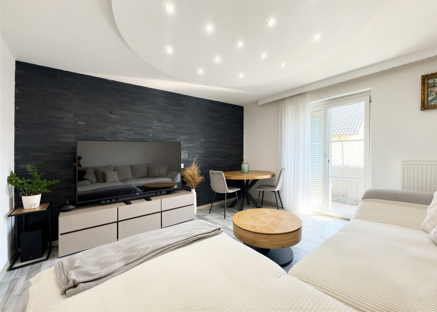 Wohnliche Räume mit großen Fenstern