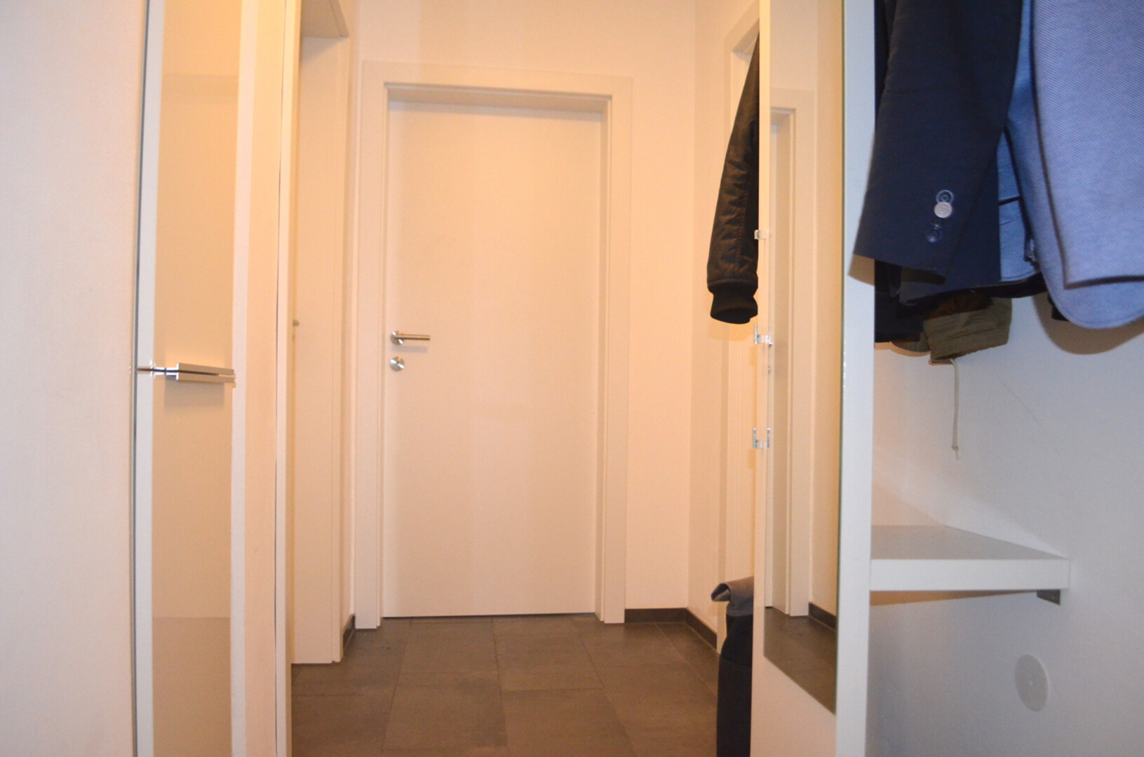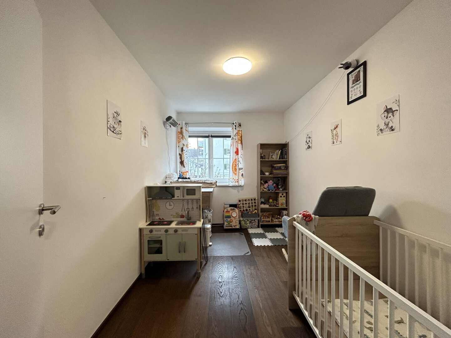 Beim Betreten der Wohnung gelangen Sie über den Eingangsbereich direkt in den zentralen Wohnbereich. Der helle und freundliche Wohnraum bietet genügend Platz für eine gemütliche Gestaltung. Von hier aus erreichen Sie das geräumige Schlafzimmer, das ausreichend Platz für ein Doppelbett und zusätzliche Möbel bietet.