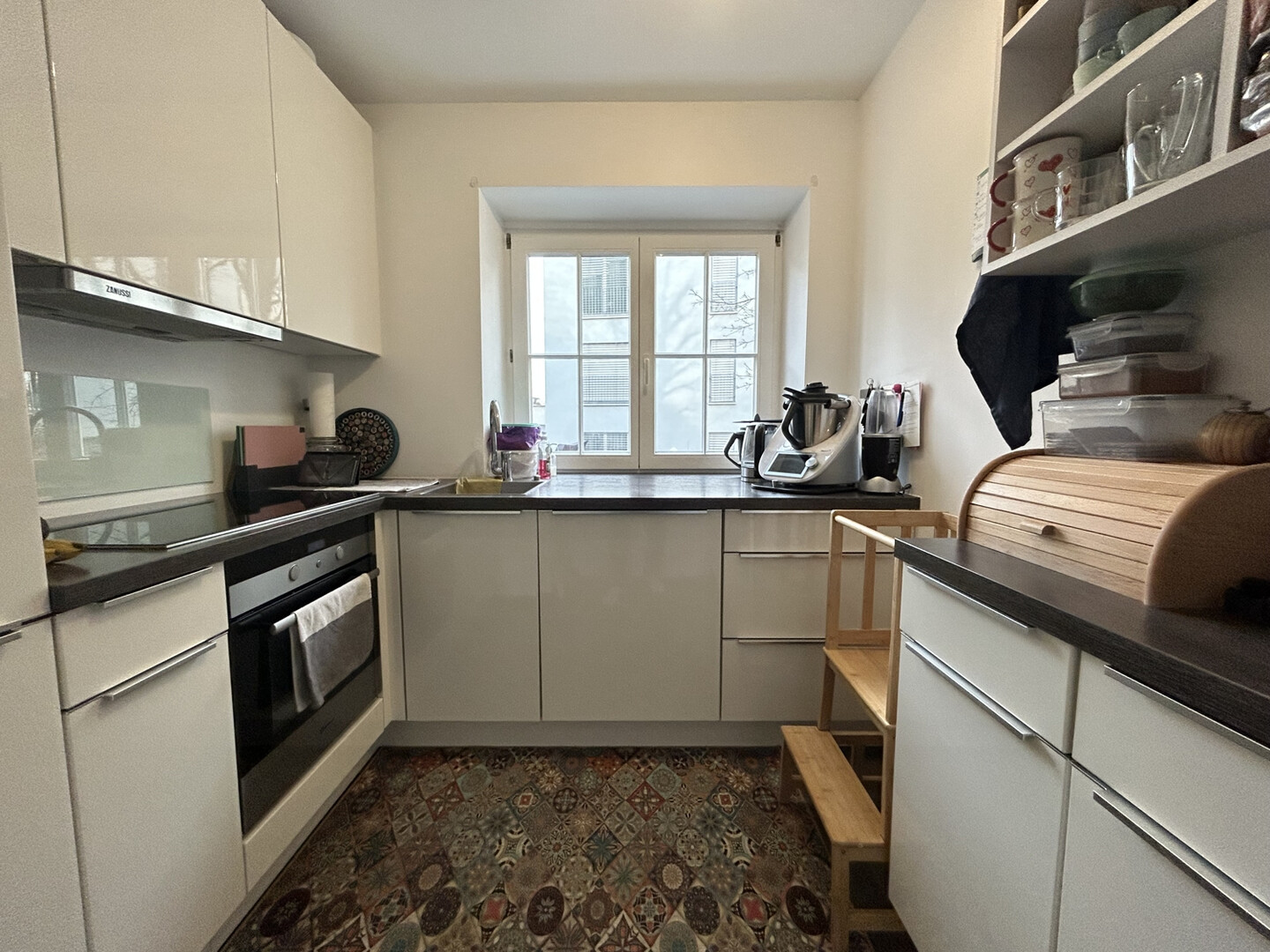 Ein großer Vorteil dieser Wohnung ist die separate Küche. Die funktionale Einbauküche ist in einem separaten Raum untergebracht, wodurch der Wohnbereich optisch und akustisch von Küchentätigkeiten getrennt bleibt. Die Küche bietet genügend Arbeitsfläche und Stauraum für alle küchentechnischen Bedürfnisse.