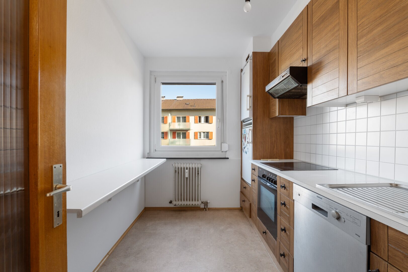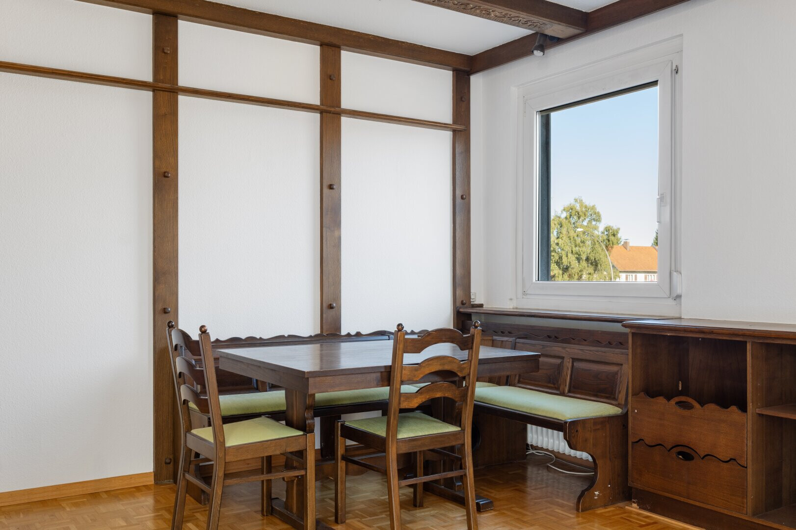 - Böden: Parkett im Wohnbereich, Fliesen im Badezimmer, WC und Loggia