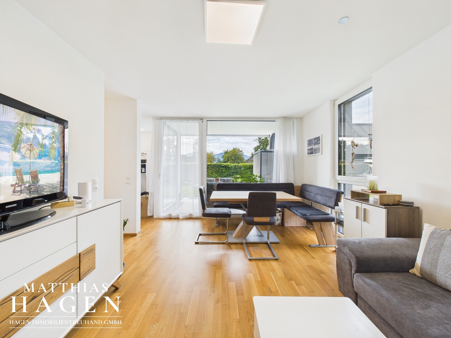 Das Highlight dieser Wohnung ist die überdachte Terrasse und der gemütliche Garten, auf der Sie entspannte Stunden im Freien genießen können. Tiefgaragenplatz inklusive.