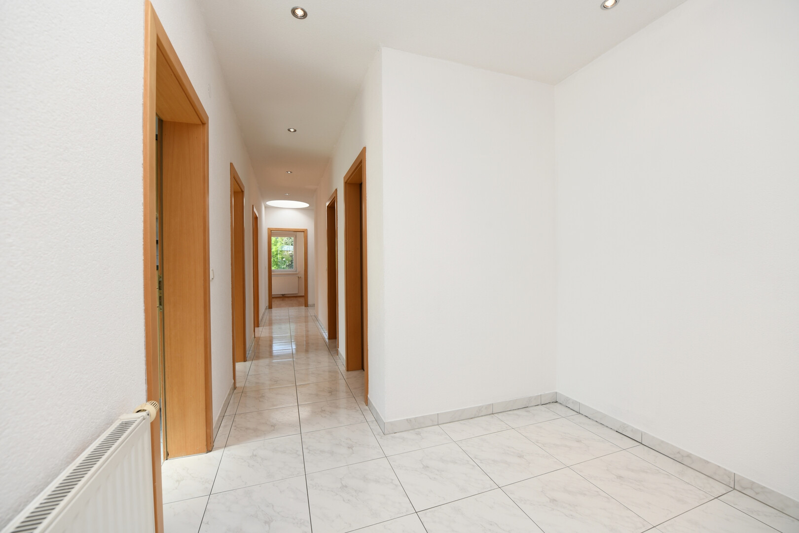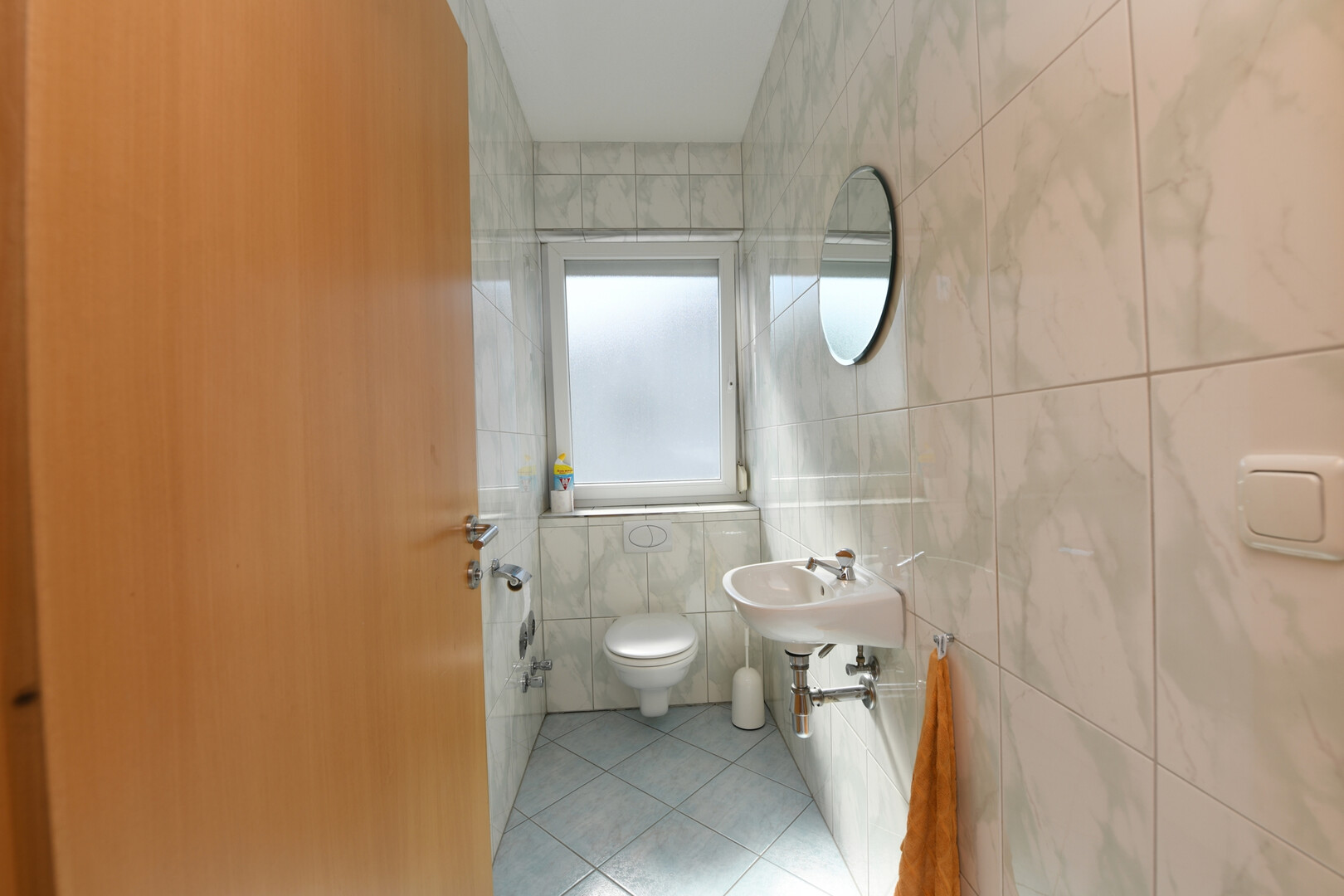 Das Tageslichtbadezimmer sorgt für ein angenehmes Wohnambiente, während zwei Oberlichter im Dielenbereich für zusätzliches Licht und eine luftige Atmosphäre sorgen. Ein separates WC mit Fenster erhöht den Komfort dieser Wohnung.