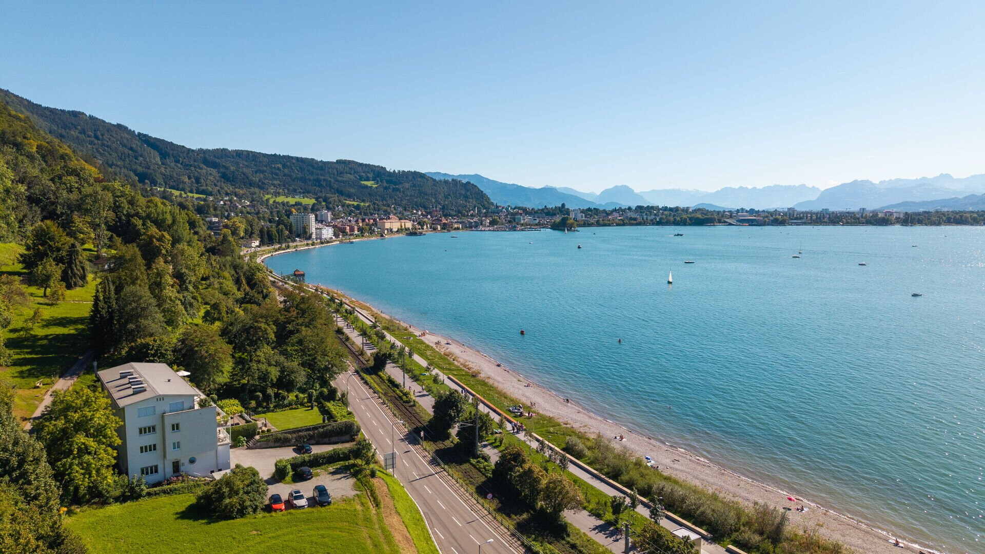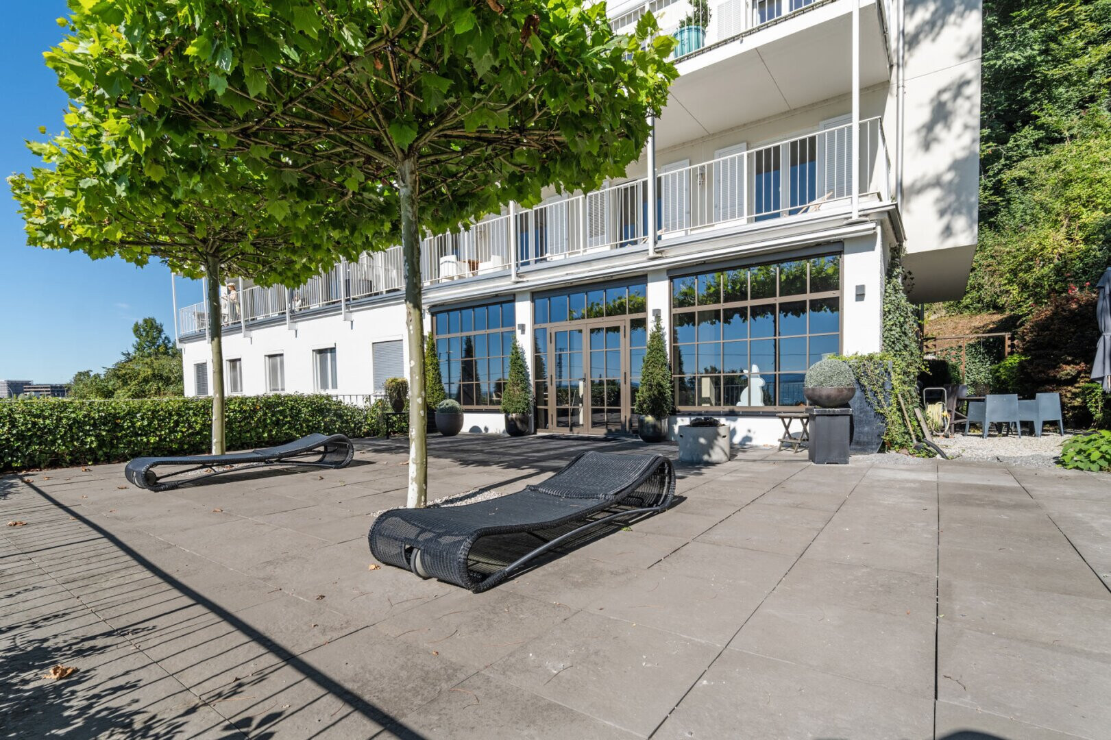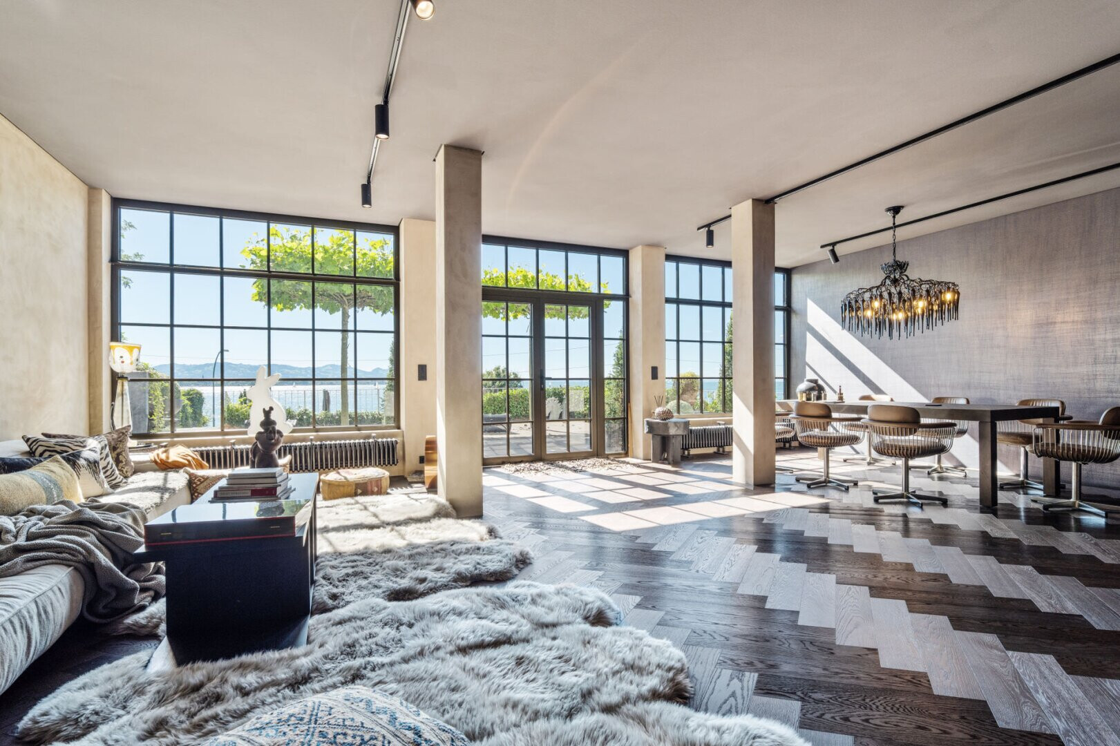 Die großzügige Terrasse direkt davor lädt ein, sich mit der Energie des Sees und der brillianten Aussicht zu verbinden.