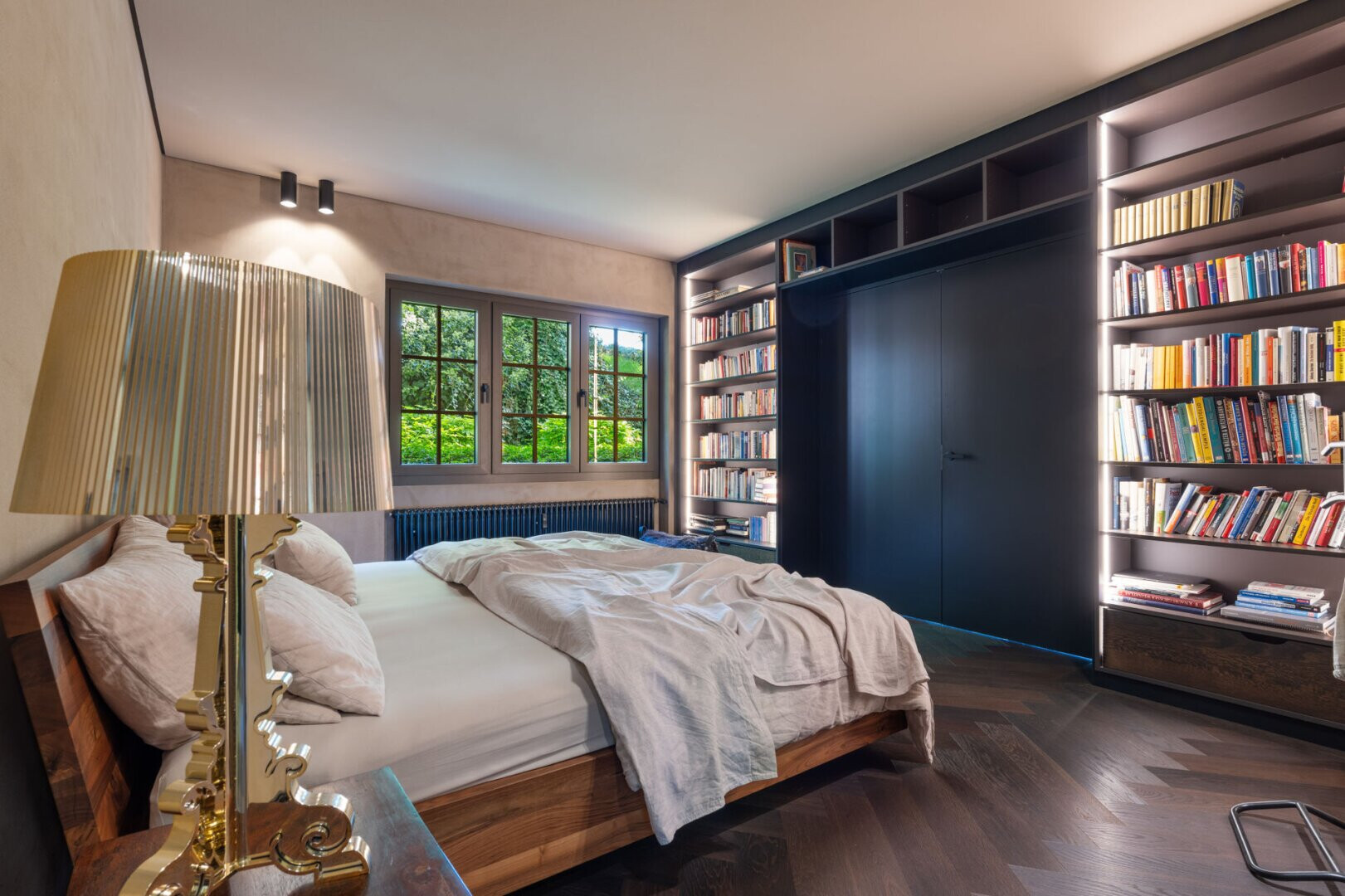 Der wahre Luxus zeigt sich morgens beim Aufwachen, wenn man durch die Flügeltüren des Schlafzimmers bereits den neuen Tag am Schimmern des Sees erahnen kann.