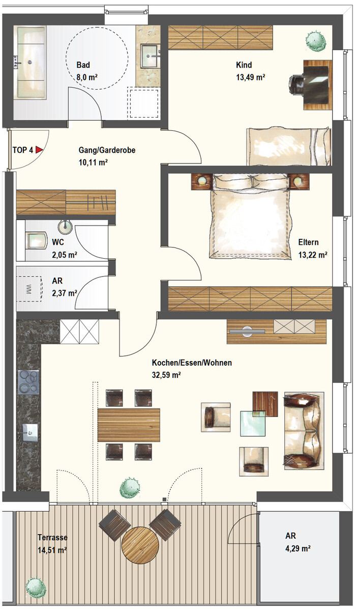 3-Zimmer-Wohnung mit Südterrasse W03 / MIETE