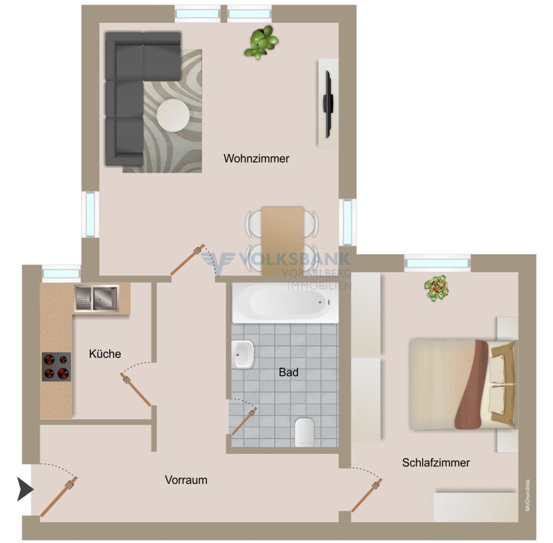 Wir weisen Sie darauf hin, dass der angeführte Grundriss als Symbolbild gilt und dieser sowie die darin enthaltenen Flächenangaben von den tatsächlichen Gegebenheiten abweichen können.