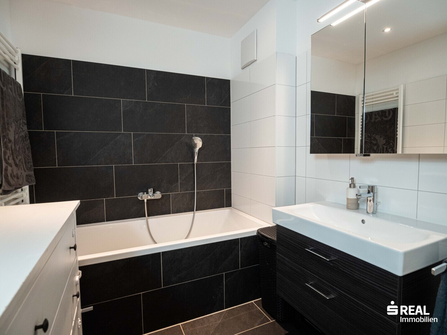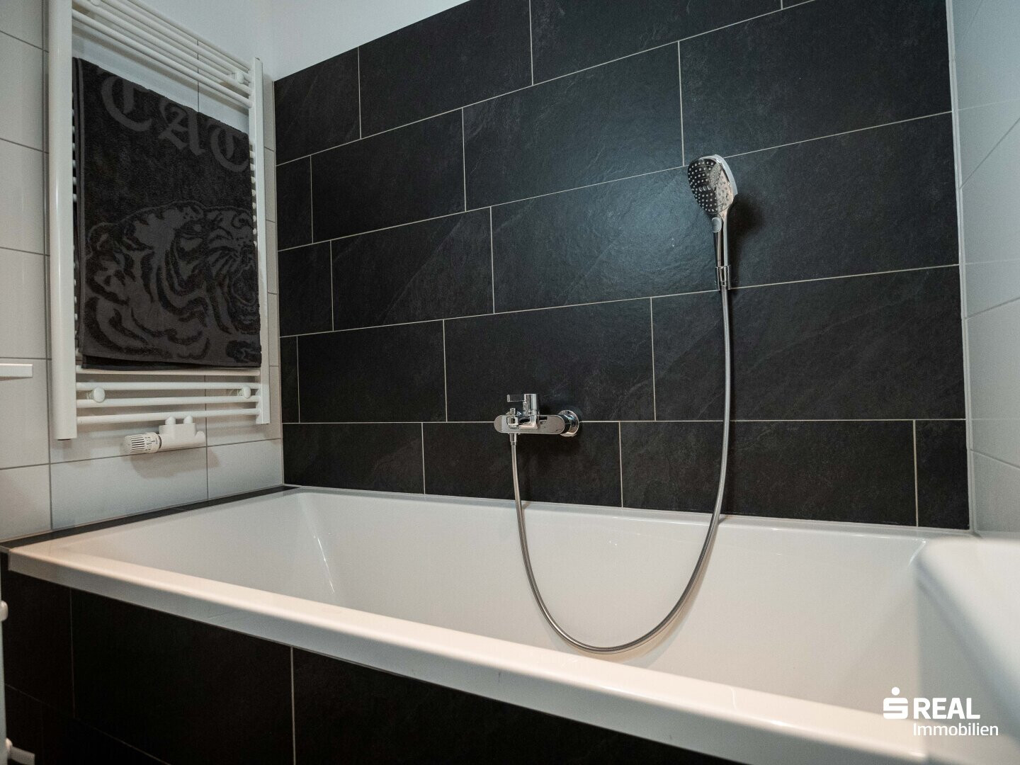 Die Wohnung verfügt über zwei komfortable Schlafzimmer, die für Ruhe und Entspannung sorgen. Das Badezimmer ist mit einer Badewanne, einer Dusche und einem Waschbecken ausgestattet. Ein separates WC sowie ein praktischer Abstellraum inklusive Waschmaschinenanschluss runden das Angebot ab.