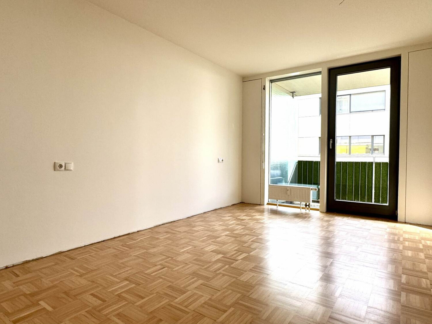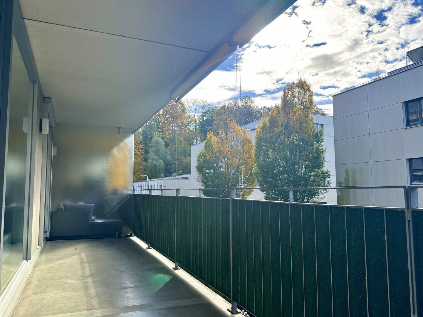 Vom Schlafzimmer und dem Wohnbereich aus gelangen Sie auf den großen, sonnigen Balkon, der zusätzlichen Wohnraum im Freien bietet.
