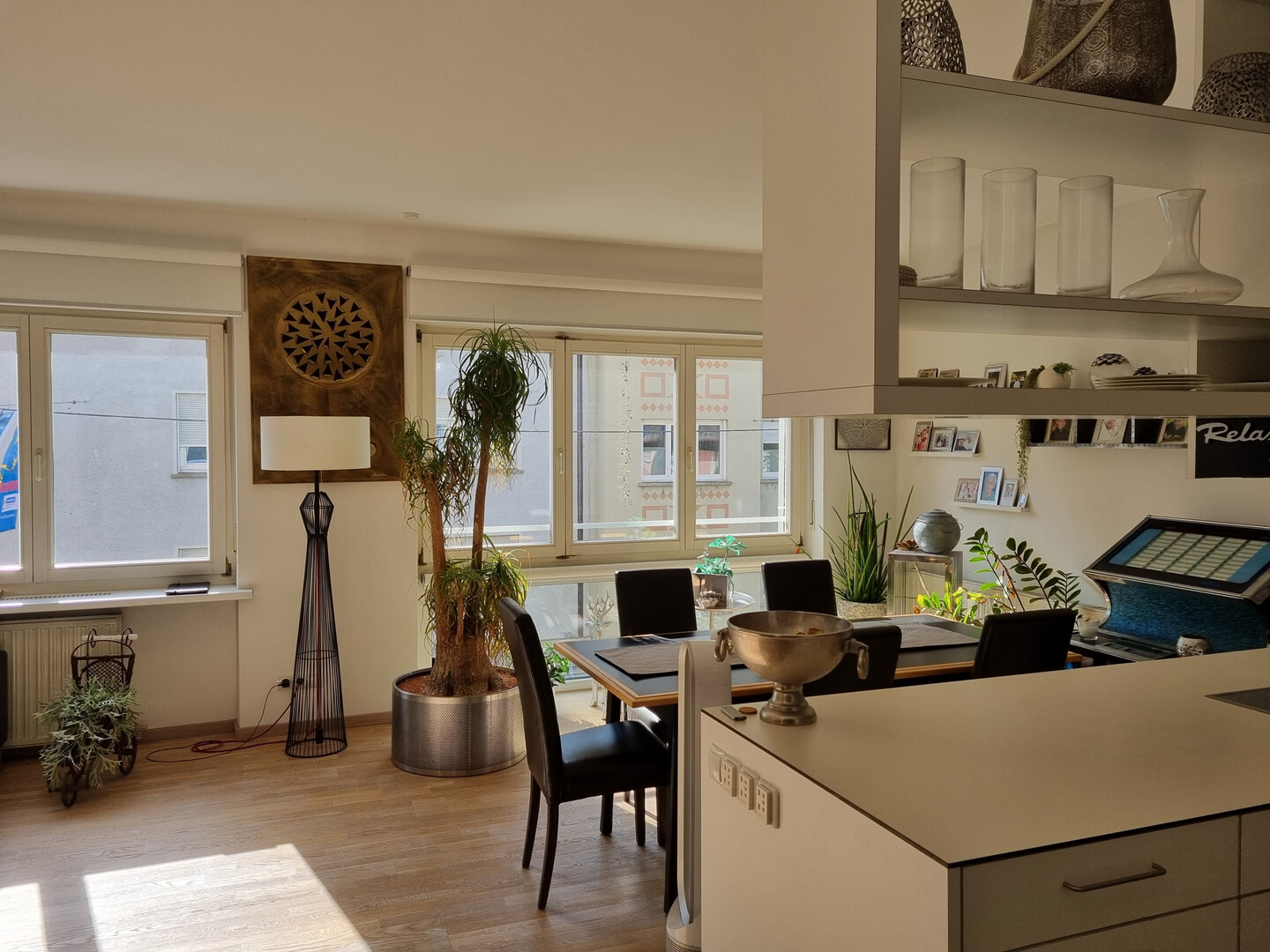Hier finden sowohl ein gemütliches Sofa als auch ein Esstisch problemlos den geeigneten Platz – perfekt für entspannte Stunden oder gesellige Abende.