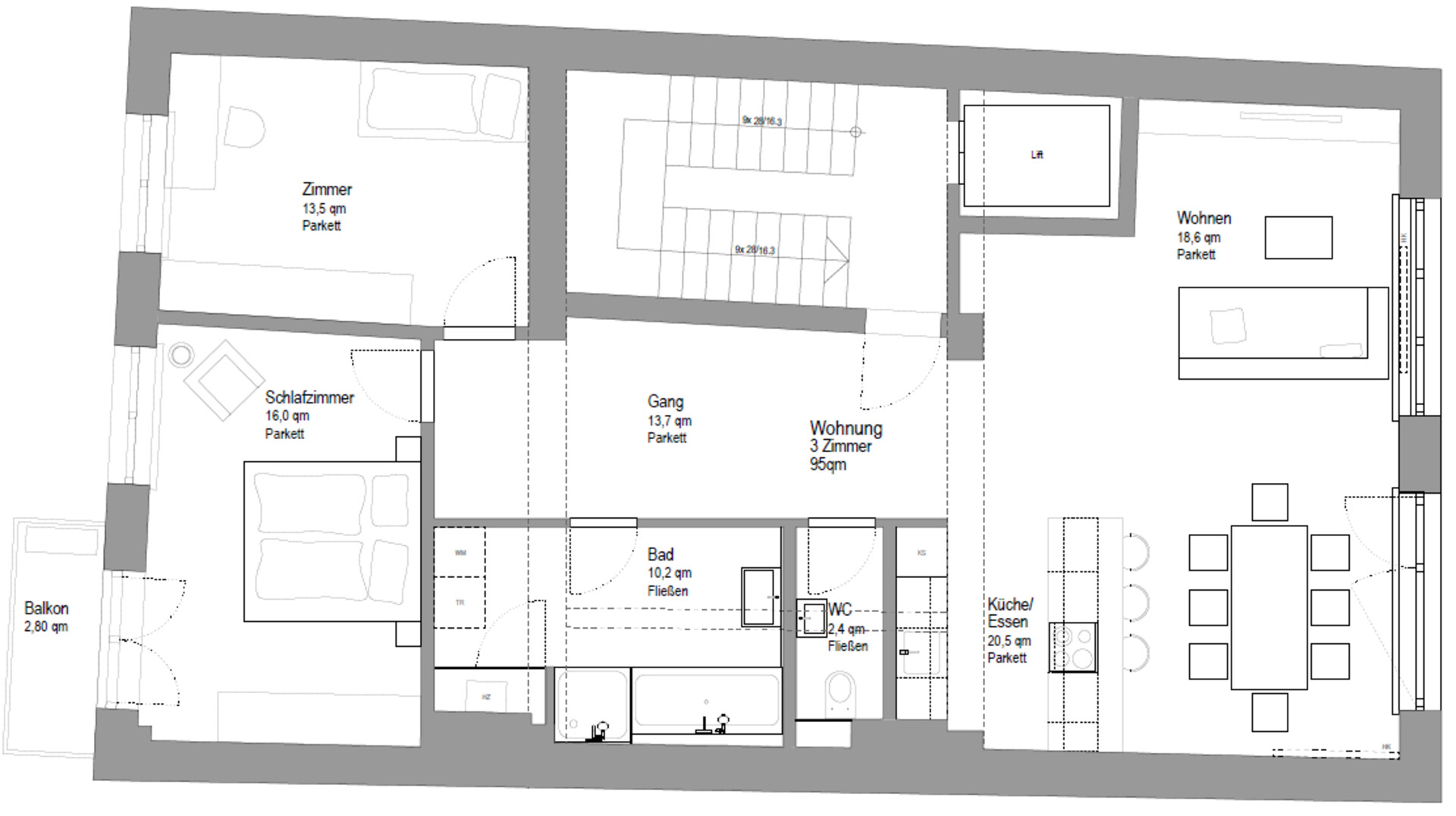Der Wohnung zugehörig ist weiters ein kleiner Balkon mit ca. 2,80 m² sowie ein Kellerabteil.