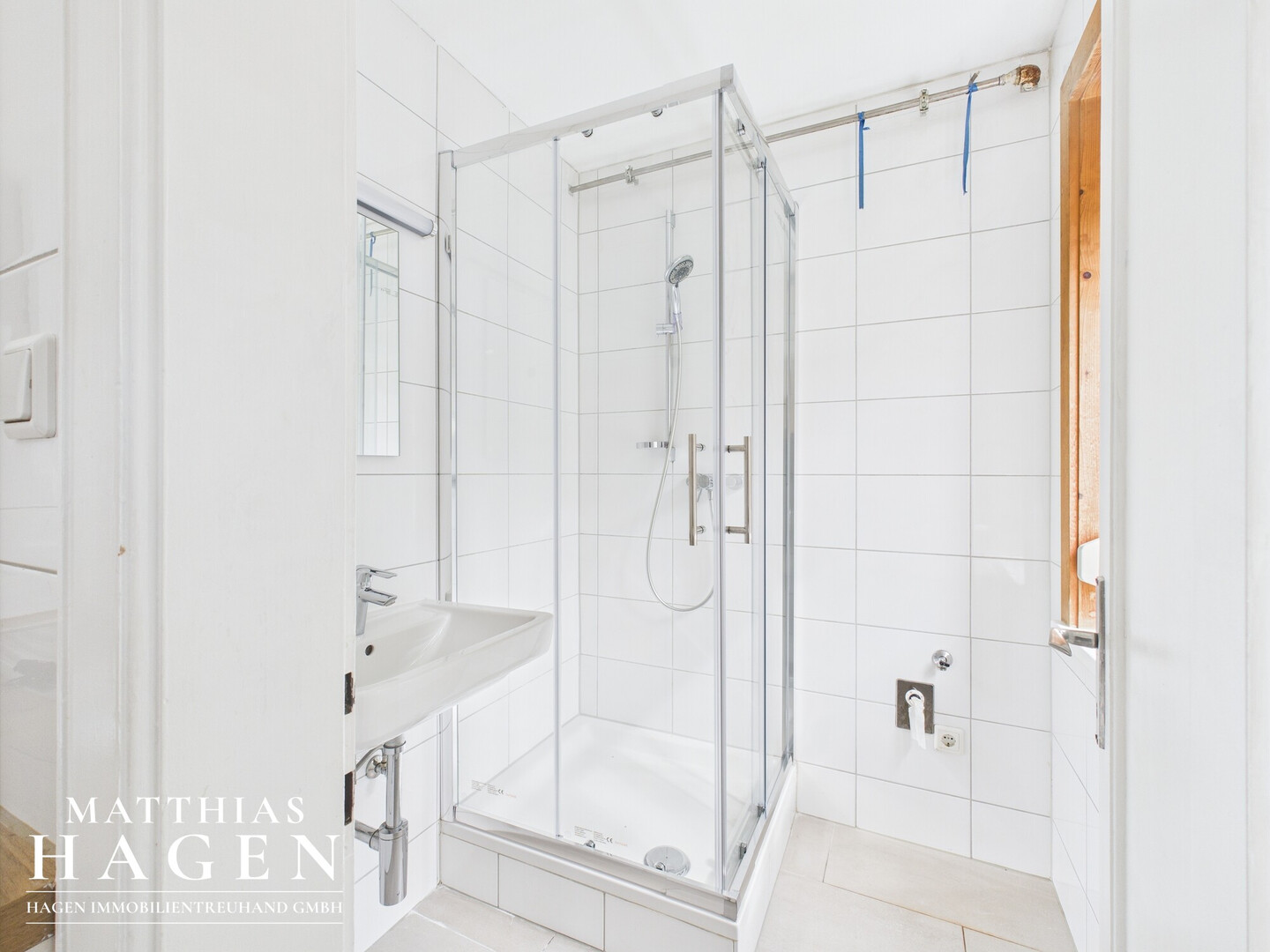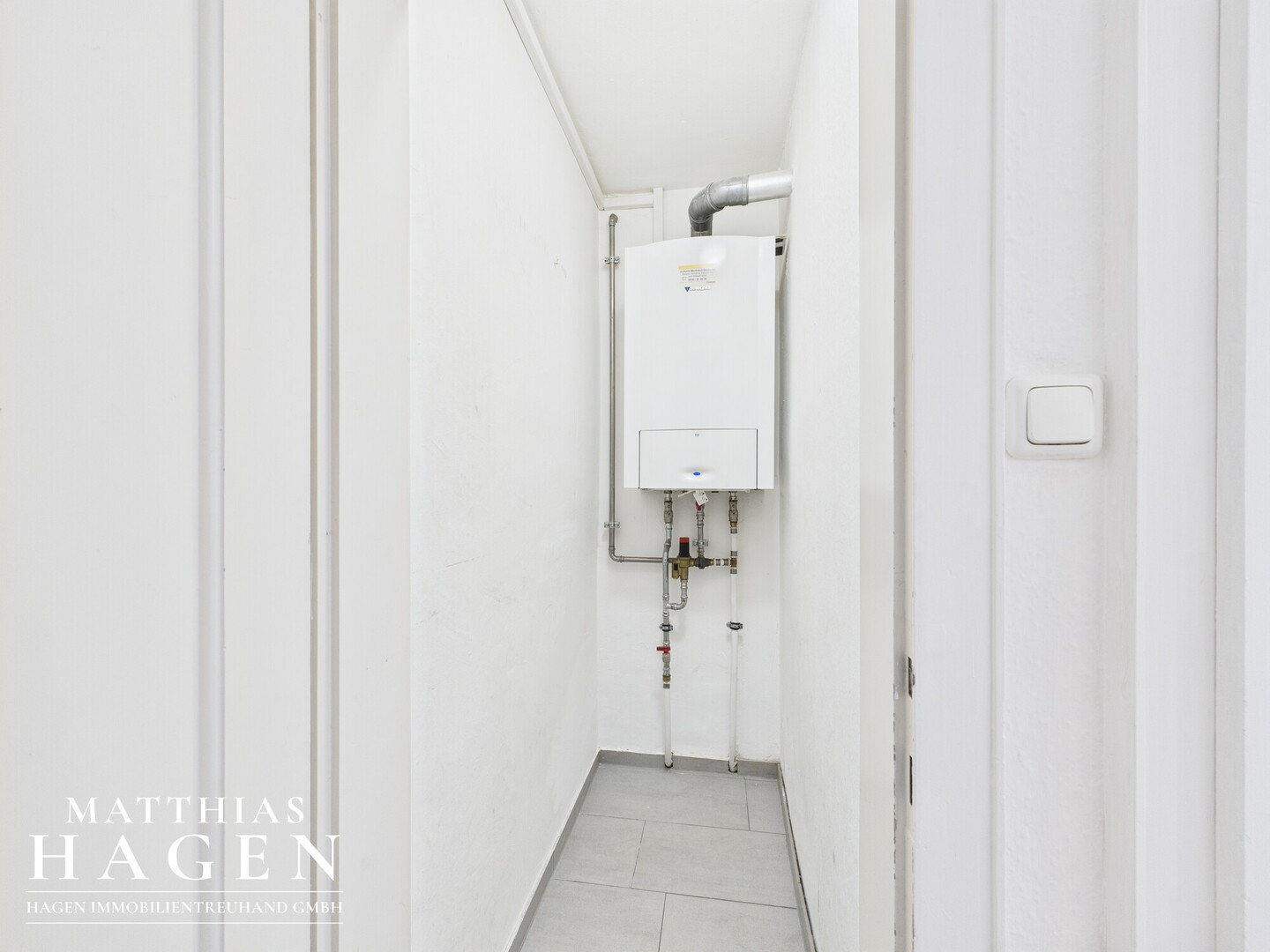 Das Badezimmer ist mit einer Dusche und einem Fenster ausgestattet, das WC liegt separat. Zusätzlich zum Kellerabteil steht ein eigener Abstellraum zur Verfügung, in dem sich auch die Gasetagenheizung befindet. Die Wohnung ist mit gemütlichen Holzböden, stilvollen Wandverkleidungen und einer modernen Küche ausgestattet, die zum Kochen und Genießen einlädt.