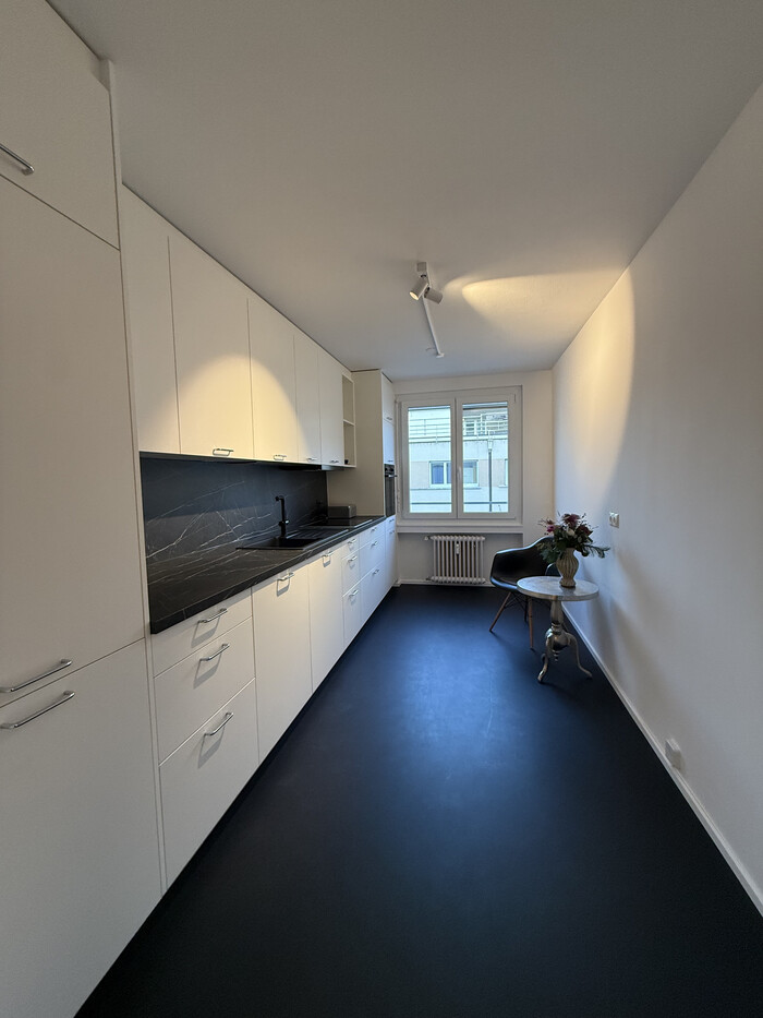 Die Wohnung überzeugt durch lichtdurchflutete Räume, edle Vollholzparkettböden und ein großzügiges, stilvolles Raumkonzept. Insgesamt stehen vier Zimmer sowie eine separate Küche zur Verfügung. Die neue DAN-Einbauküche bietet viel Stauraum, moderne Ausstattung (Bosch Geräte) und hohen Komfort.