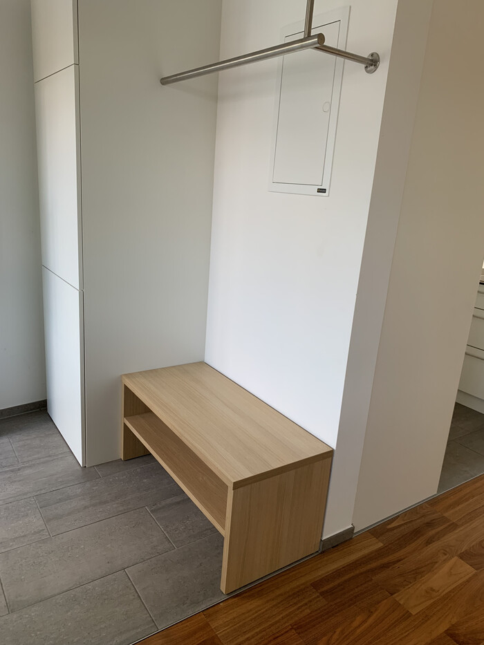 Eingangsbereich, gefliest, Garderobe vom Tischler