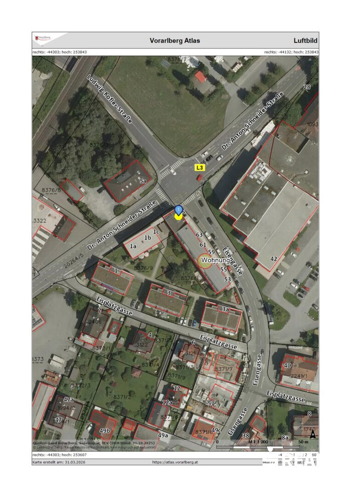 Die sonnige Wohnung überzeugt weiters durch ihre ausgezeichnete Infrastruktur (siehe Lageplan) sowie den herrlichen Blick auf Karren, First und die Schweizer Berge. Ein Personenaufzug ist vorhanden; die Wohnung wird über einen breiten Laubengang erschlossen.