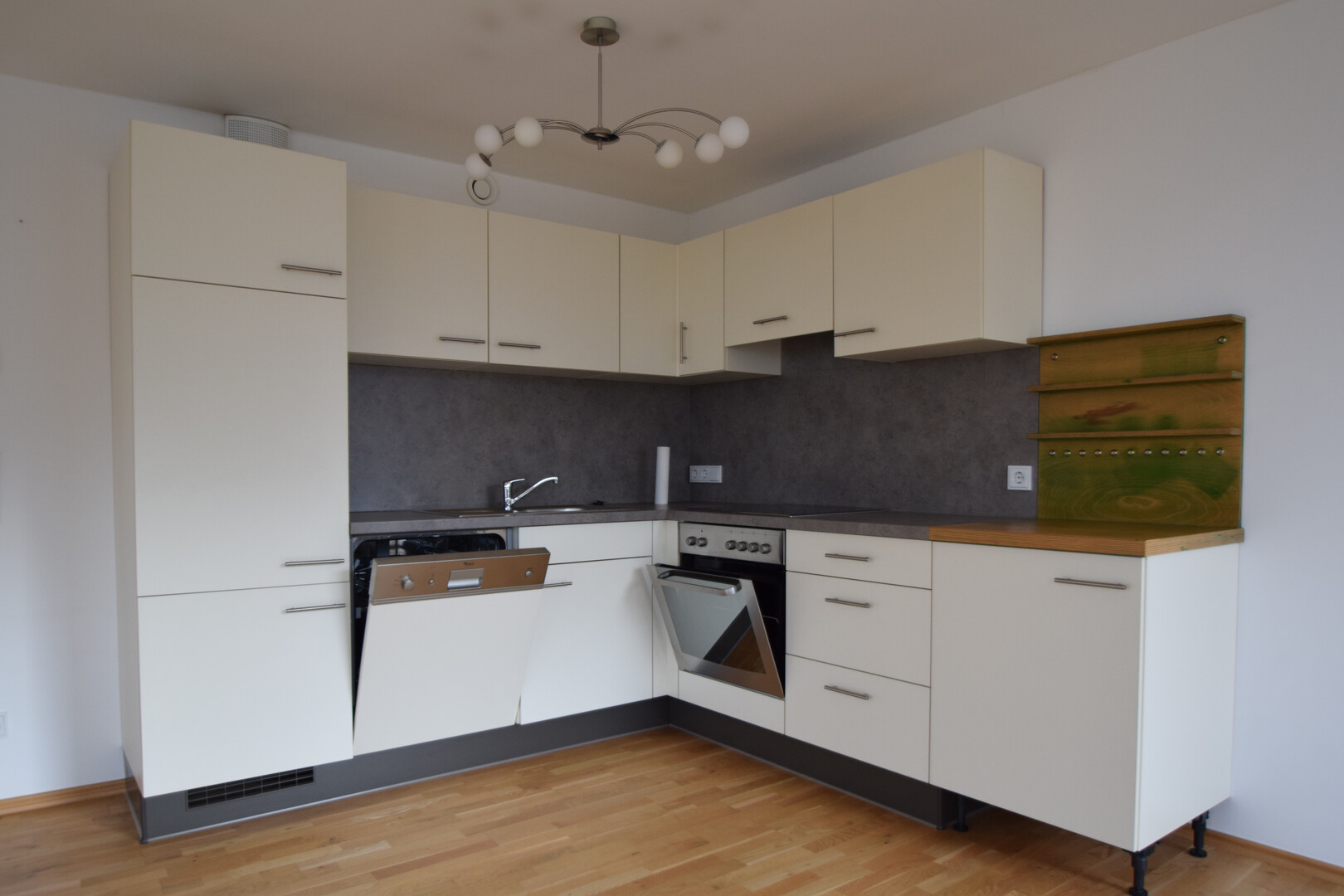 Die Wohnung hat einen schönen Ausblick Richtung Stadt und Karren. Die Wohnung ist in Vorraum, Wohn-Essbereich mit offener Küche, zwei Schlafzimmer, Badezimmer mit Badewanne und Duschfaltwand und ein separates WC aufgeteilt. Der Waschmaschinenanschluss befindet sich im Badezimmer.