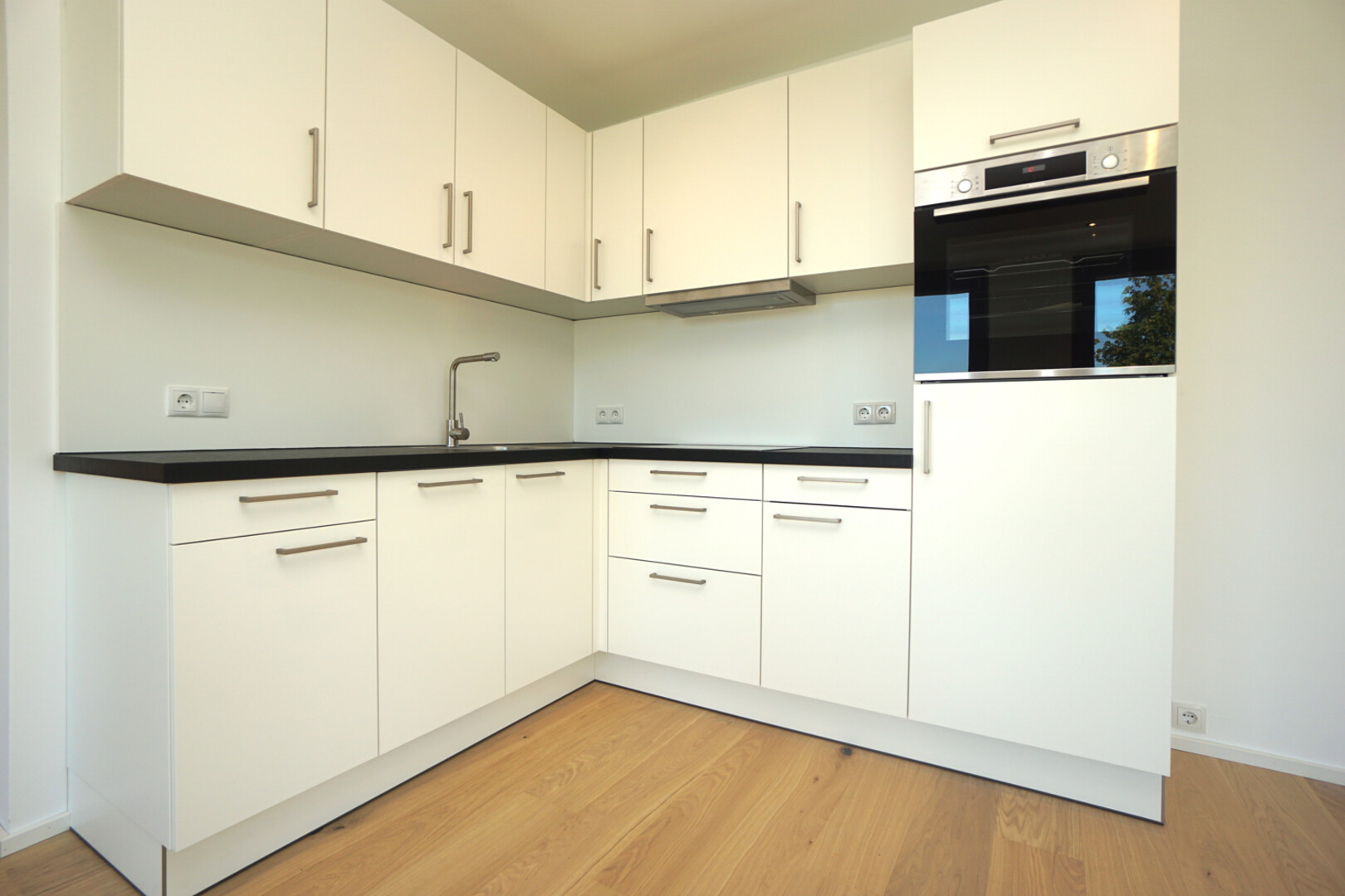 Die Wohnung besitzt eine hochwertige und voll ausgestatteten Einbauküche von der Firma Weiler Möbel mit Markengärten der Firma BOSCH. Hier können Sie Ihren Kochkünsten freien Lauf lassen. Der Wohn-, Schlaf-/Essbereich ist mit einem Massivparkettboden ausgestattet.