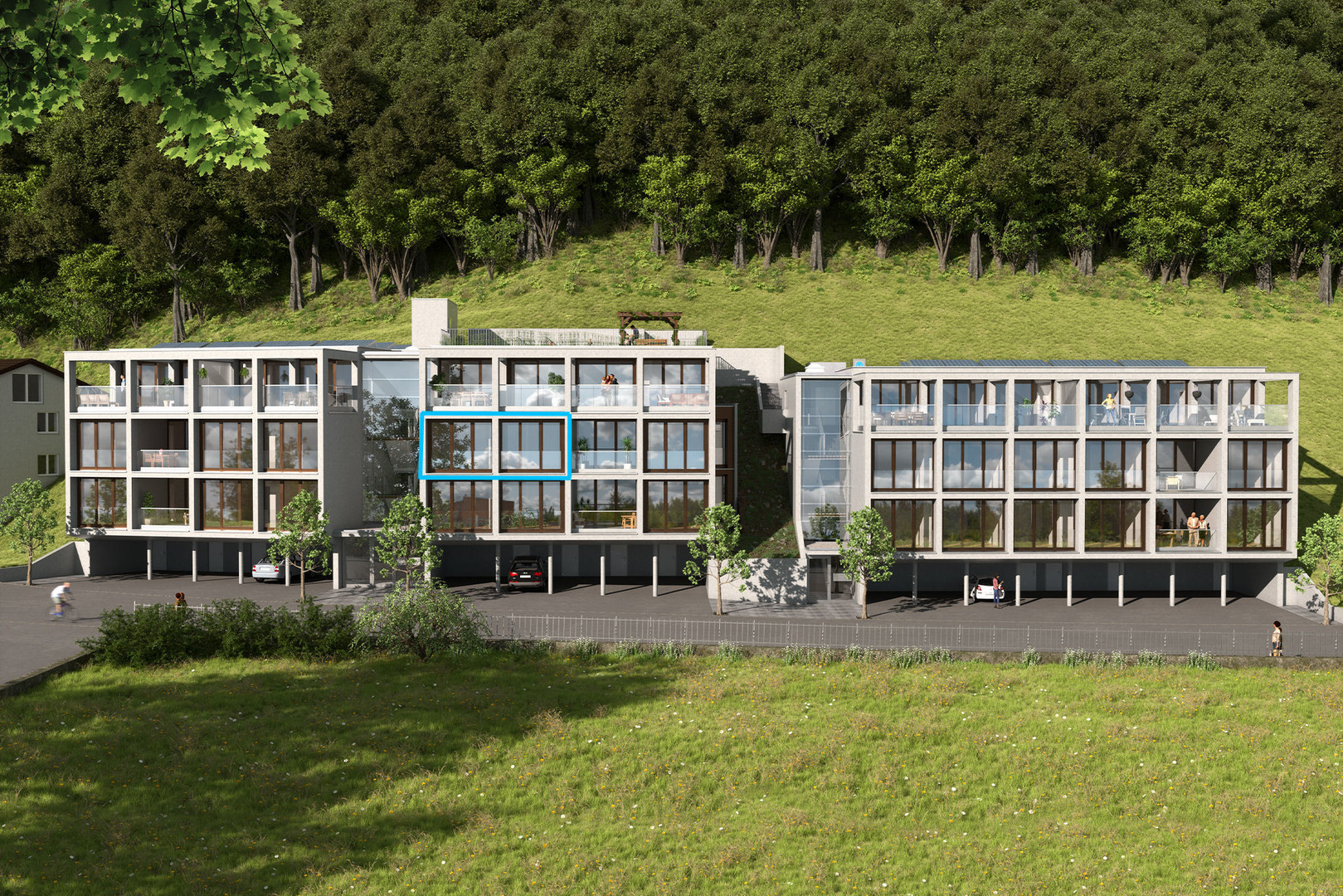 Die Wohnanlage wurde von einem renommierten Architekturbüro entworfen und befindet sich direkt am Berghang. Sowohl die Innenstadt als auch die FHV sind nur wenige Gehminuten entfernt. Natur- und Wanderliebhaber werden die ideale Lage als Ausgangspunkt für vielfältige Wandermöglichkeiten schätzen. Die Karrenseilbahn ist nur wenige Minuten zu Fuß entfernt.