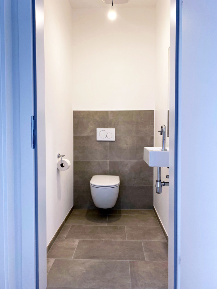 Die Wohnung begeistert mit einer hochwertigen Einbauküche und überdurchschnittlich hohen Decken, die ein einzigartiges Wohngefühl vermitteln. Das Badezimmer und die Toilette sind mit erstklassigen Feinsteinzeug-Fliesen ausgestattet, während die ebenerdige Dusche Komfort bietet. Ein separater Abstellraum mit Waschmaschinen- und Trockneranschlüssen ist ebenfalls vorhanden.