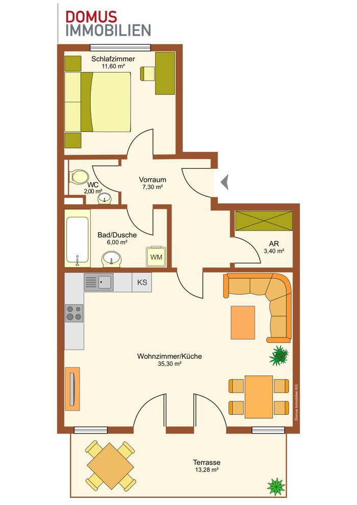 Die in diesem Angebot verwendeten Pläne und Fotos sind urheberrechtlich geschützt. Jede unbefugte Vervielfältigung, Verbreitung oder Nutzung – insbesondere durch Dritte – ist ohne vorherige schriftliche Genehmigung des Urhebers nicht gestattet. Verstöße gegen das Urheberrecht können rechtliche Konsequenzen nach sich ziehen. ©Domus Immobilien KG