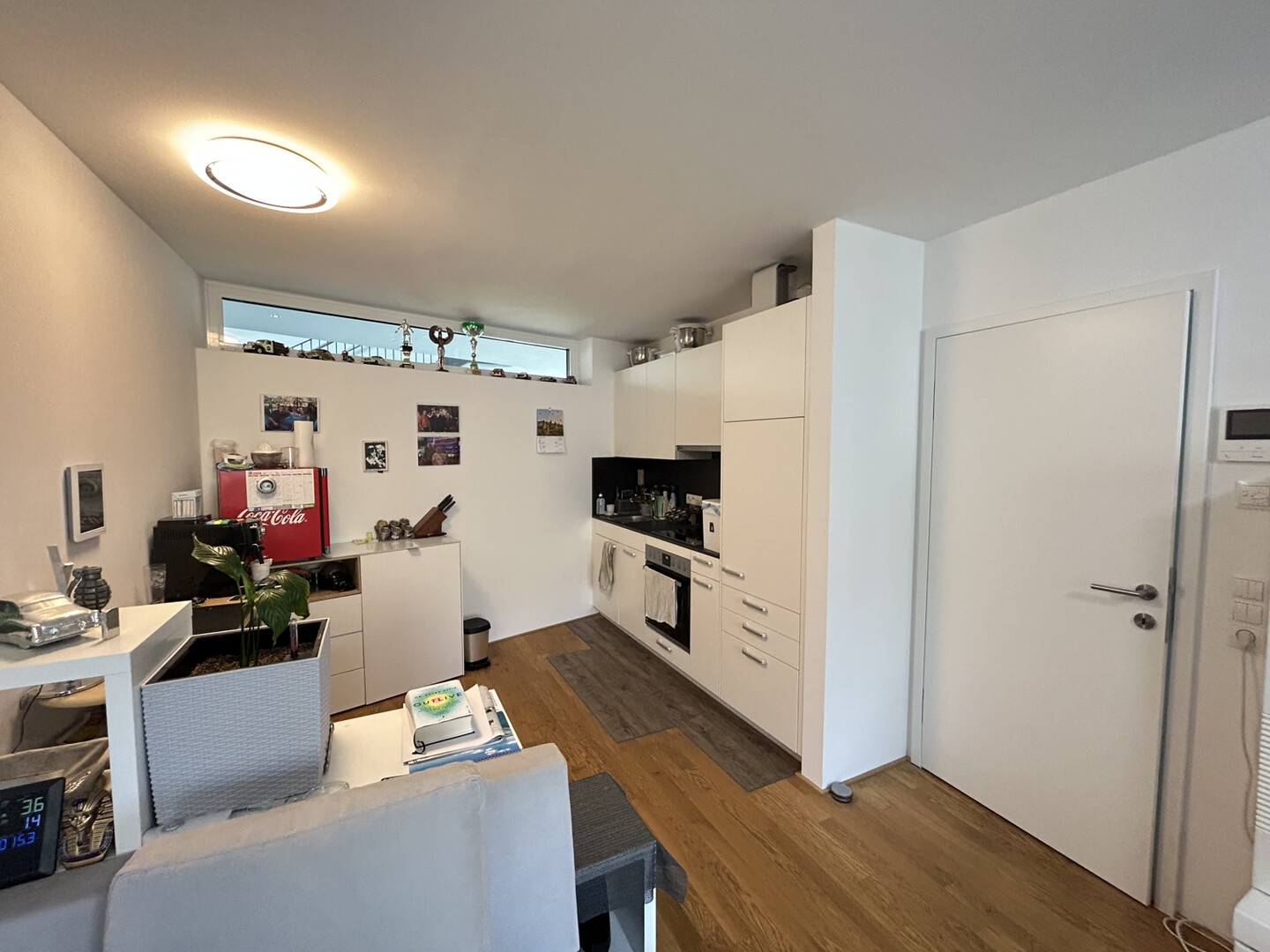Die Einbauküche und überzeugt durch ihre hochwertige Ausstattung. Sie bietet ausreichend Stauraum und ist optimal in den Wohnraum integriert.