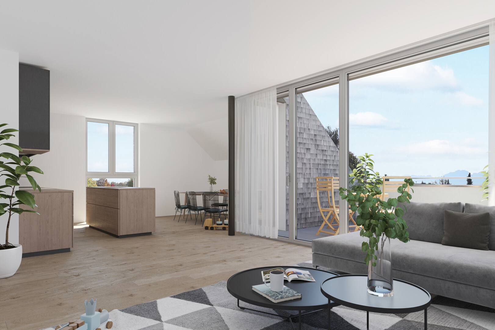 Ortsrand von Lustenau. Die durchdachten Grundrisse der 2-, 3- und 4-Zimmer Wohnungen bieten Platz sowohl für