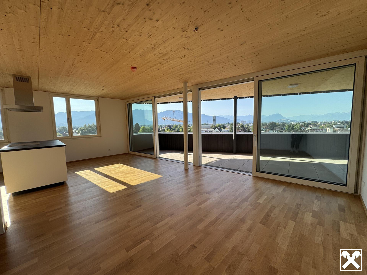 Ausblick zu den Schweizer Bergen. Mit großzügigen Wohnräumen, einer stilvollen Gestaltung und hochwertigen Materialien bietet diese Wohnung alles, was Sie sich für Ihr Zuhause wünschen.