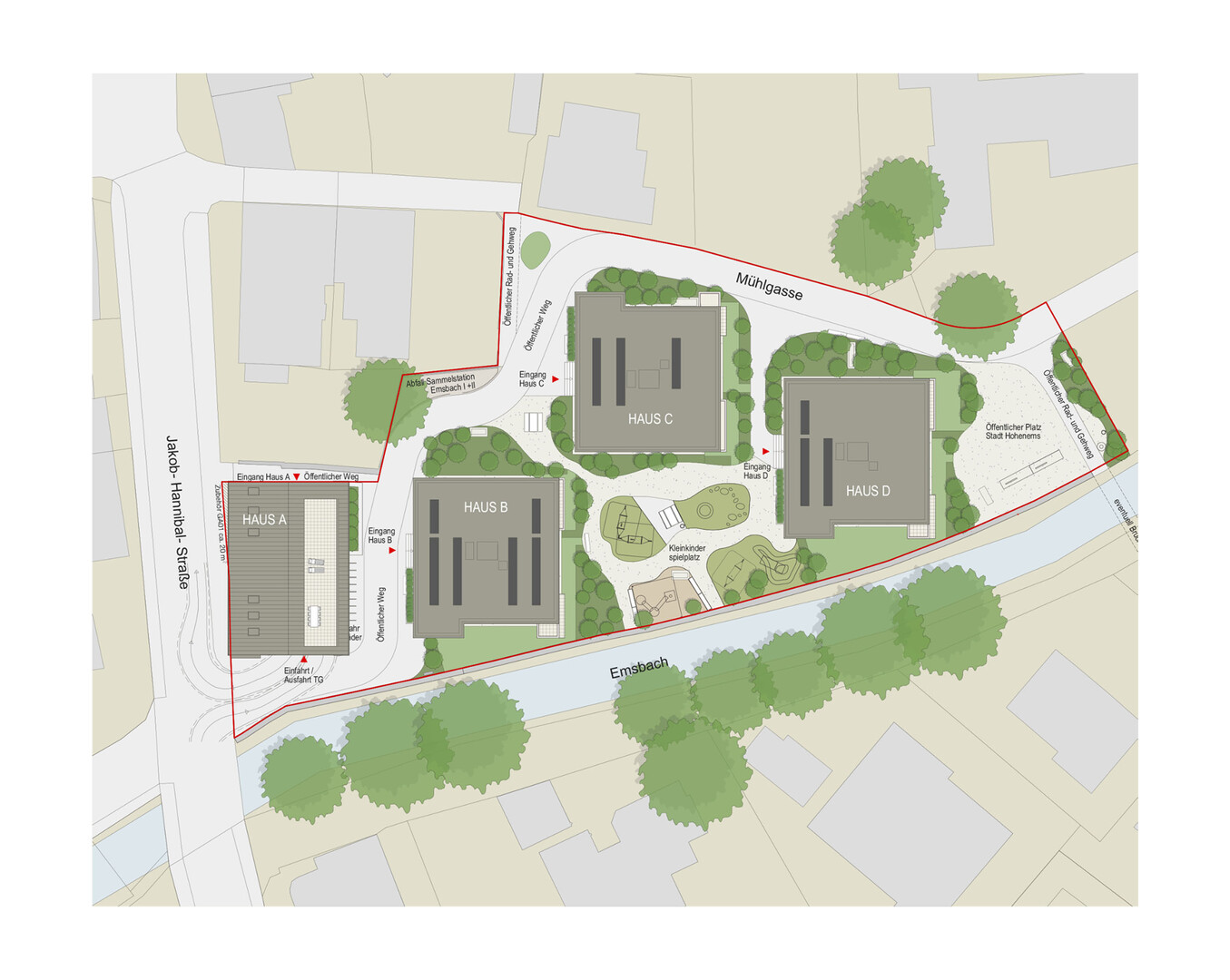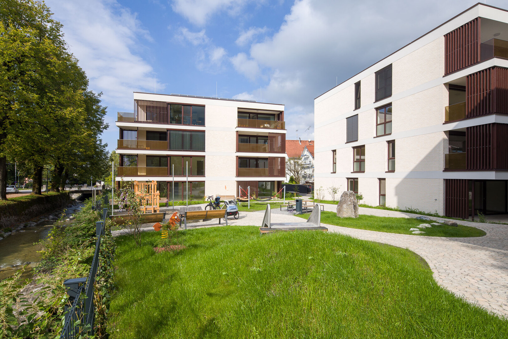 Direkt im Zentrum von Hohenems und doch sehr ruhig gelegen, ist die zweite Bauetappe des Wohnquartiers „Am Emsbach“ abgeschlossen. Verbunden über die gemeinsame Tiefgarage sind vier Mehrfamilienhäuser mit insgesamt 40 Eigentumswohnungen entstanden. Durch die direkte Lage am Emsbach und die unmittelbare Nachbarschaft des historischen Zentrums mit Renaissancepalast, der Pfarrkirche St. Karl-Borromäus und den revitalisierten Bauten des Jüdischen Viertels sind diese Eigentumswohnungen einzigartig.