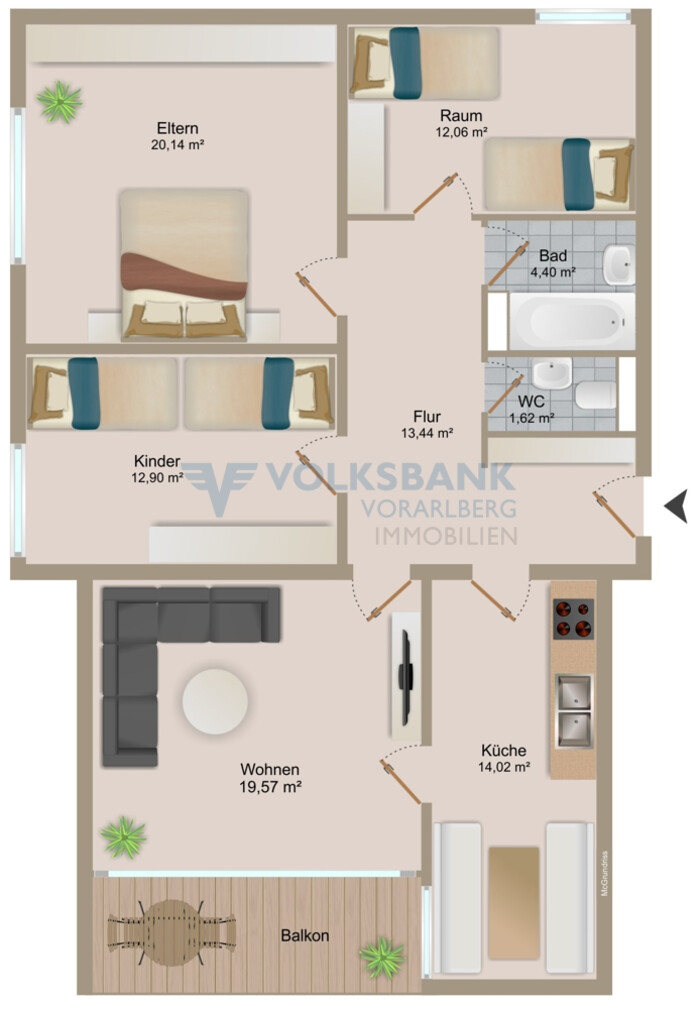 Wir weisen Sie darauf hin, dass der angeführte Grundriss als Symbolbild gilt und dieser sowie die darin enthaltenen Flächenangaben von den tatsächlichen Gegebenheiten abweichen können.
