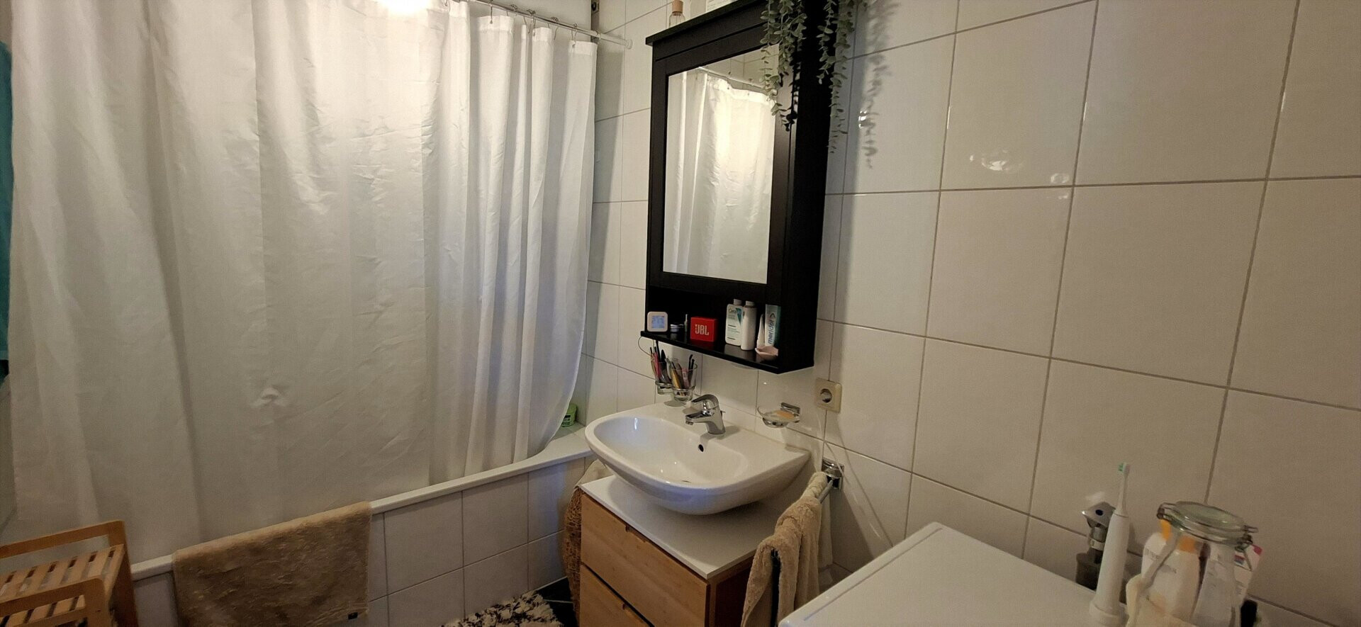 Im Eingangsbereich befindet sich die Garderobe sowie das Badezimmer mit Badewanne.