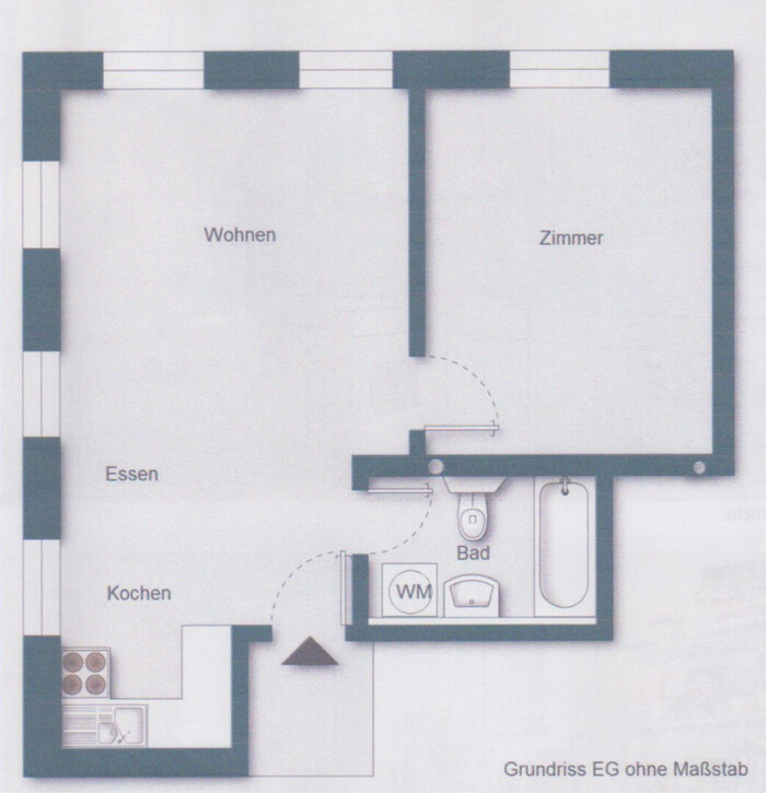 Die Wohnung liegt im Hochparterre eines renovierten Mehrparteienhauses.
