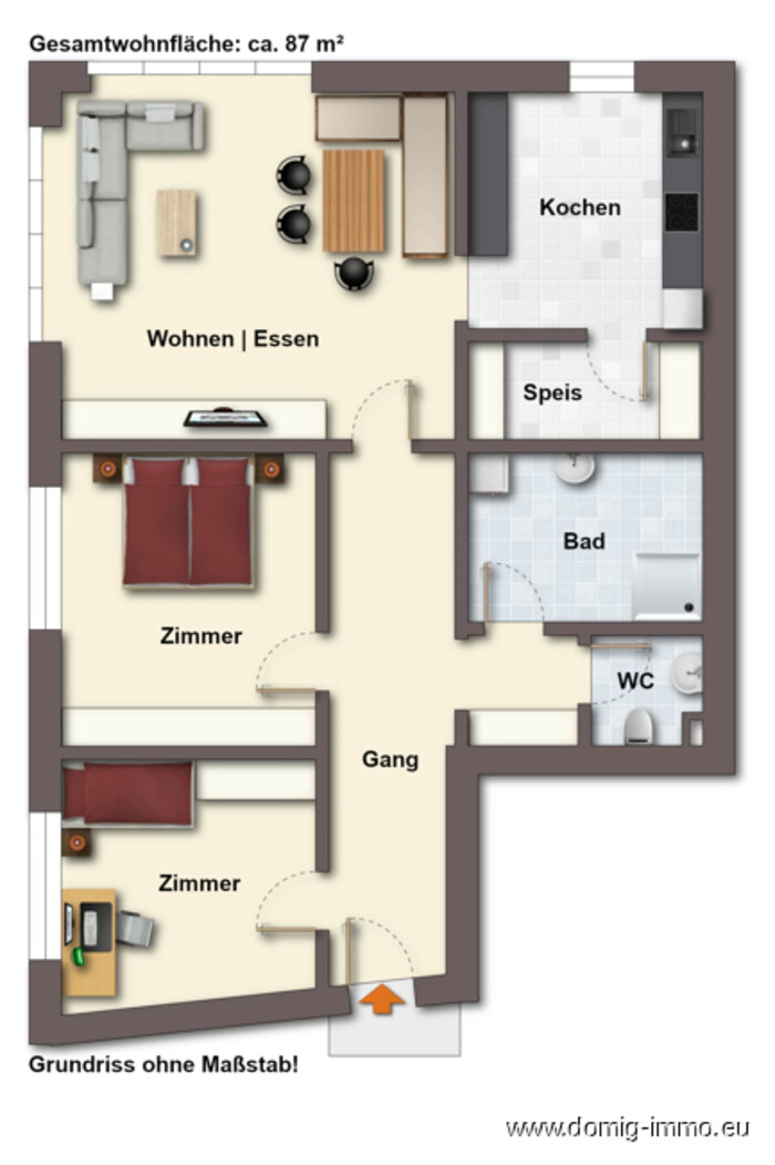 •Großzügige 3 Zimmer, abgetrennte Wohnküche