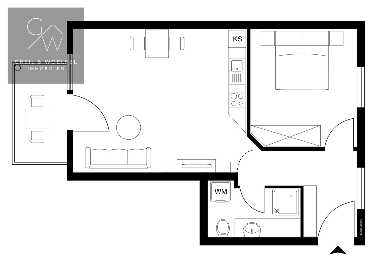 Der offene Wohnbereich sorgt für eine einladende Atmosphäre und die moderne Einbauküche lässt keine Wünsche offen. Sie verfügt über funktionale Geräte und bietet ausreichend Platz für kulinarische Kreationen. Das separate Schlafzimmer verspricht erholsame Nächte und ausreichend Stauraum für Ihre persönlichen Dinge. Das Badezimmer ist stilvoll gestaltet und komplett ausgestattet.