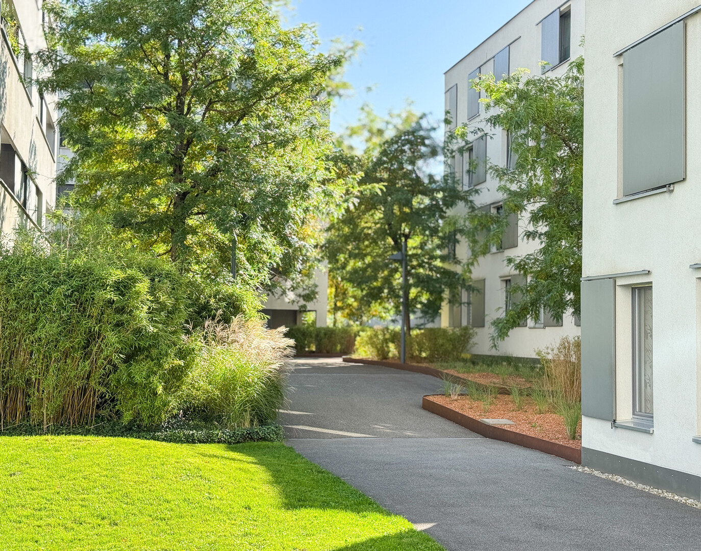 - Zwei Tiefgaragenplätze können zusätzlich erworben werden (a € 22.500,-)